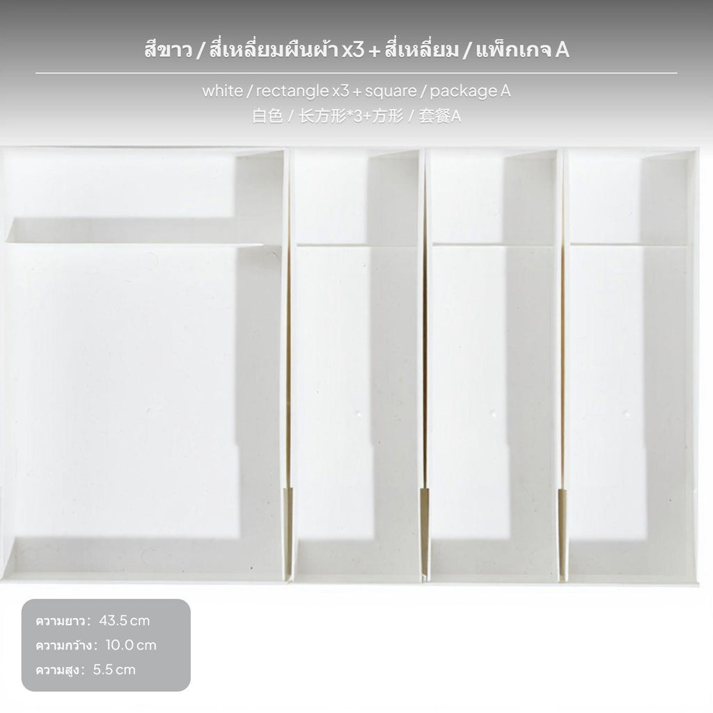 [simple Organization] This 6-piece drawer organizer set includes 2 small, 2 mid-range, and 2 large boxes, providing adaptable choices for sorting utensils, stationery, cosmetics, and assorted items.[Premium Material & Sleek Design] Crafted from environmentally conscious PS material, these storage boxes feature a clean ivory finish and a Nordic minimalist design, blending seamlessly with any home decor.[Flexible Combination & Sturdy layering] Designed for convenience, the boxes can be freely combined and securely stacked to maximize your storage space in drawers or cabinets efficiently.[Multi-Scenario Usage] perfect for a variety of environments including kitchen drawers, office desks, bedroom dressing tables, and bathroom cabinets, this organizer enhances tidiness in any location you need it.[Convenient & Adjustable Sizes] With different dimensions, this set caters perfectly to your specific needs, making it easier than ever to maintain an orderly and clutteruncluttered living space.Specification: