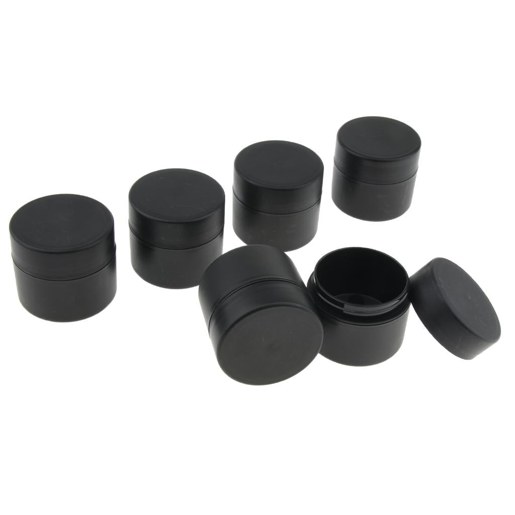 Max 6 Pieces 50g Double Layer Plastic Cosmetic Jars Lotion Pots with Lids Black