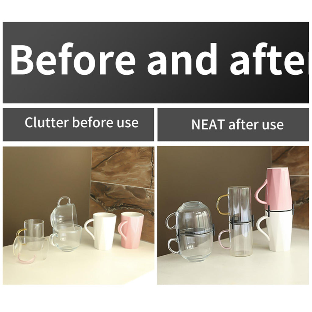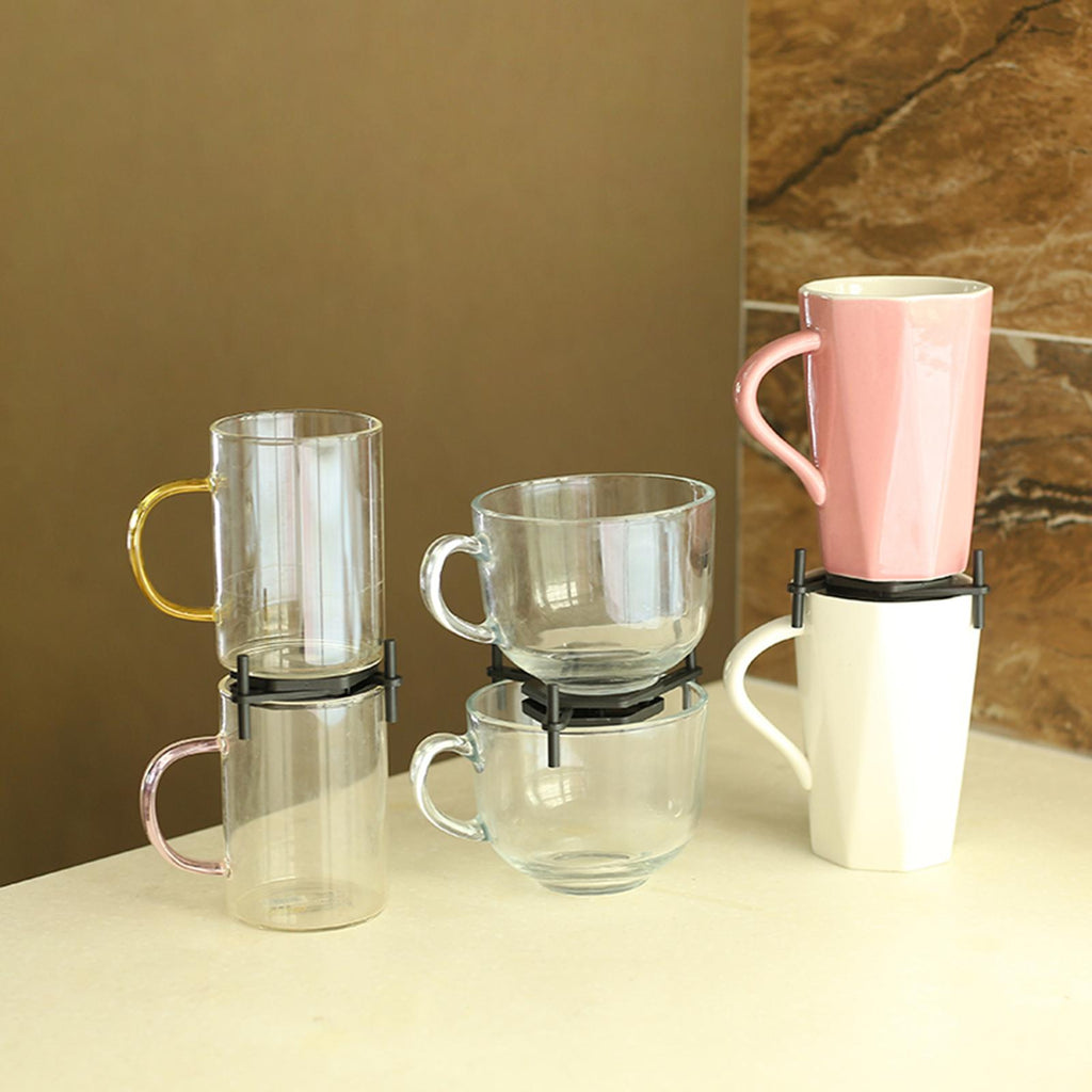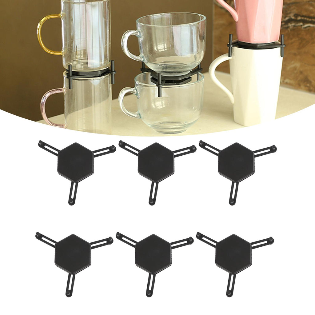 Maxbell 6pcs Cup Stacking Rack Set Kitchen Cabinet Shelf Mug Organizer Black