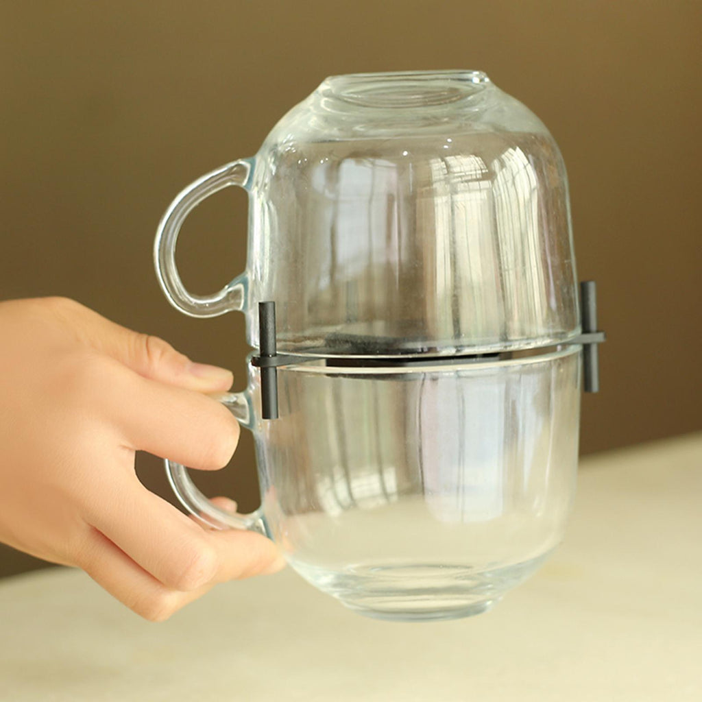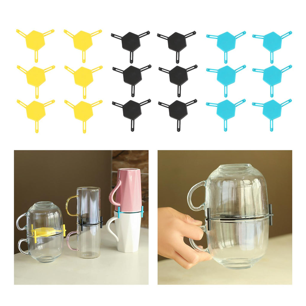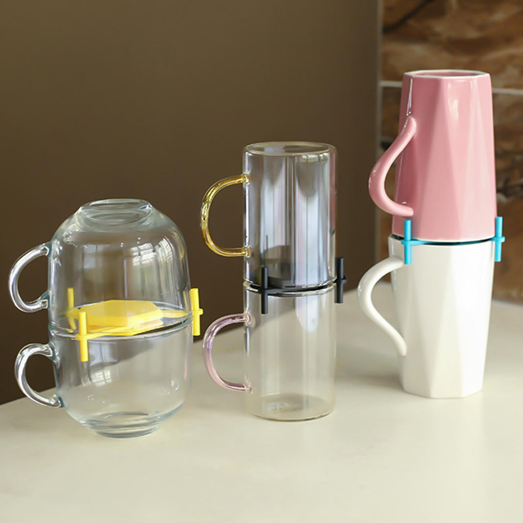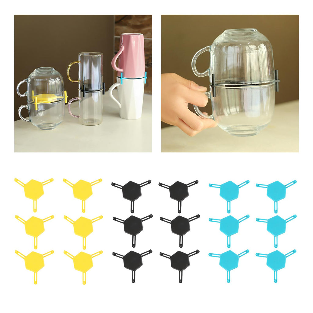 Maxbell 6pcs Cup Stacking Rack Set Kitchen Cabinet Shelf Mug Organizer Black