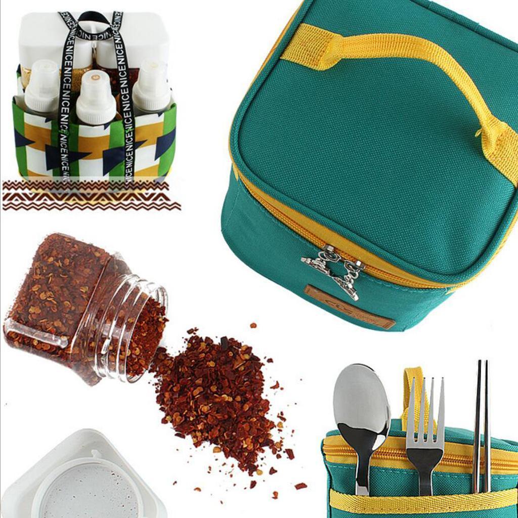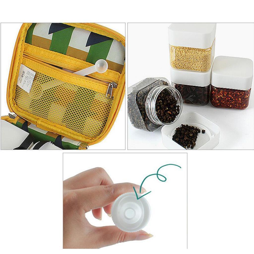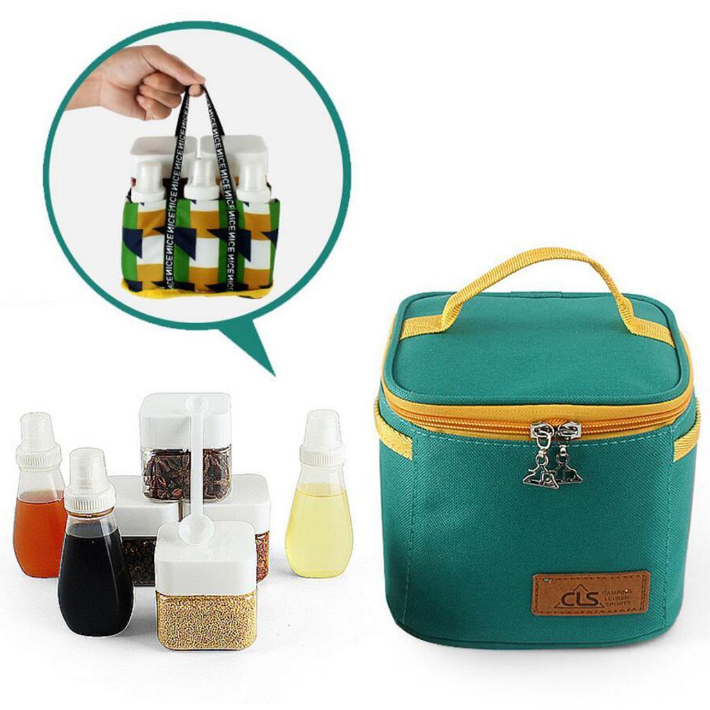 Outdoor cooking spice jar and storage bag set, including 6pcs food grade condiment storage bottles, 1pcs storage hand carry bag