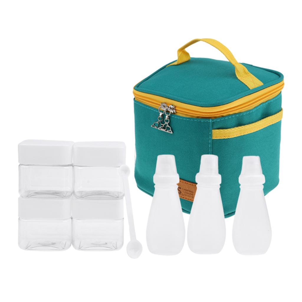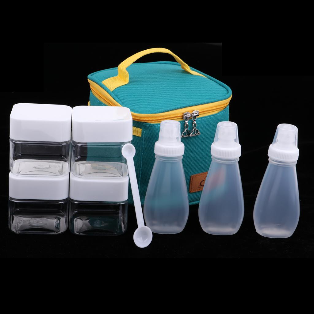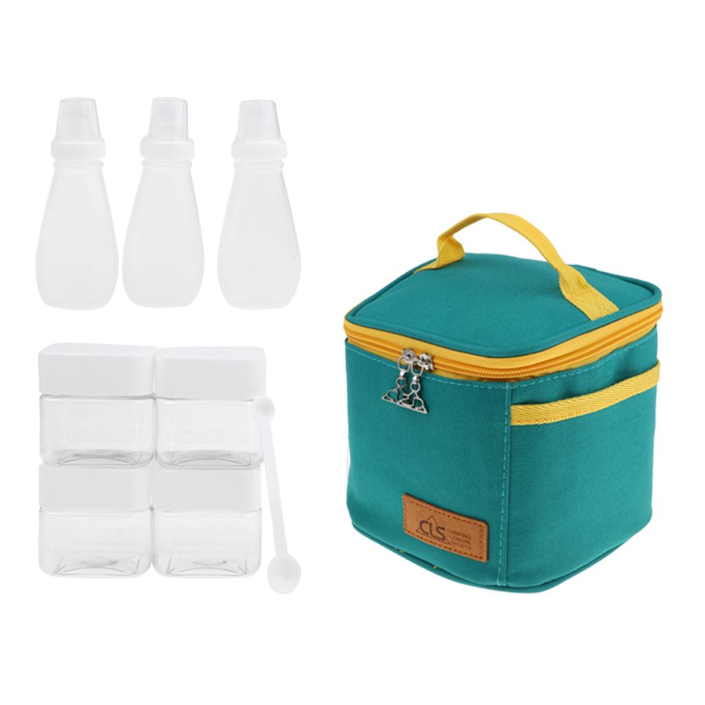 Outdoor cooking spice jar and storage bag set, including 6pcs food grade condiment storage bottles, 1pcs storage hand carry bag