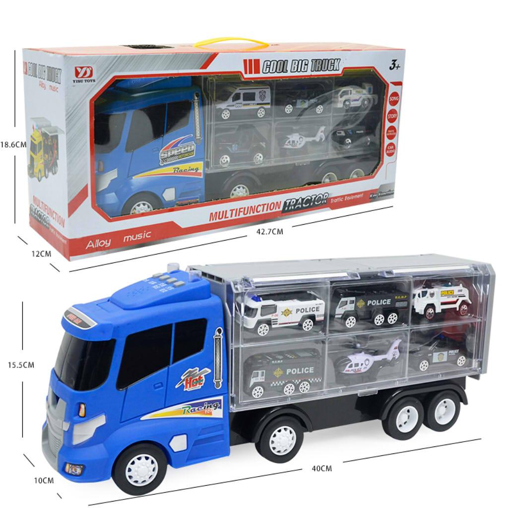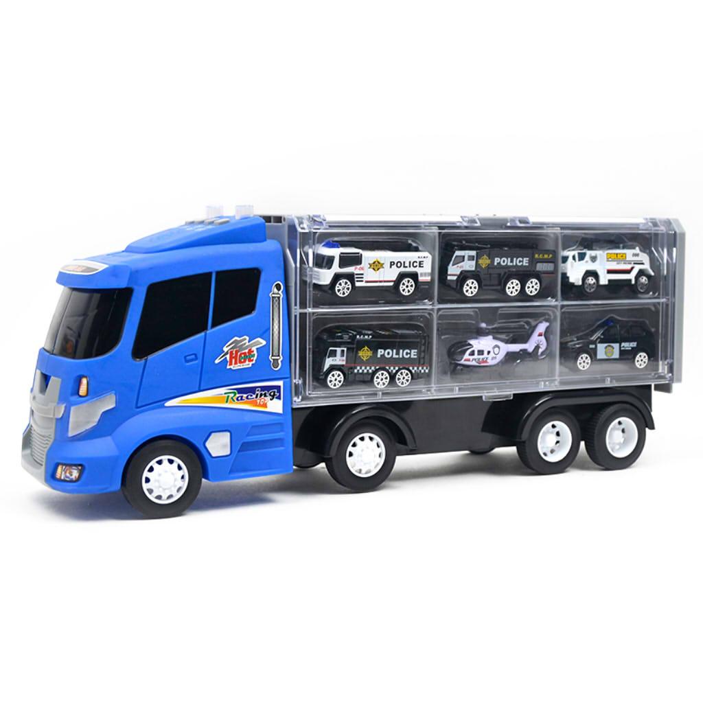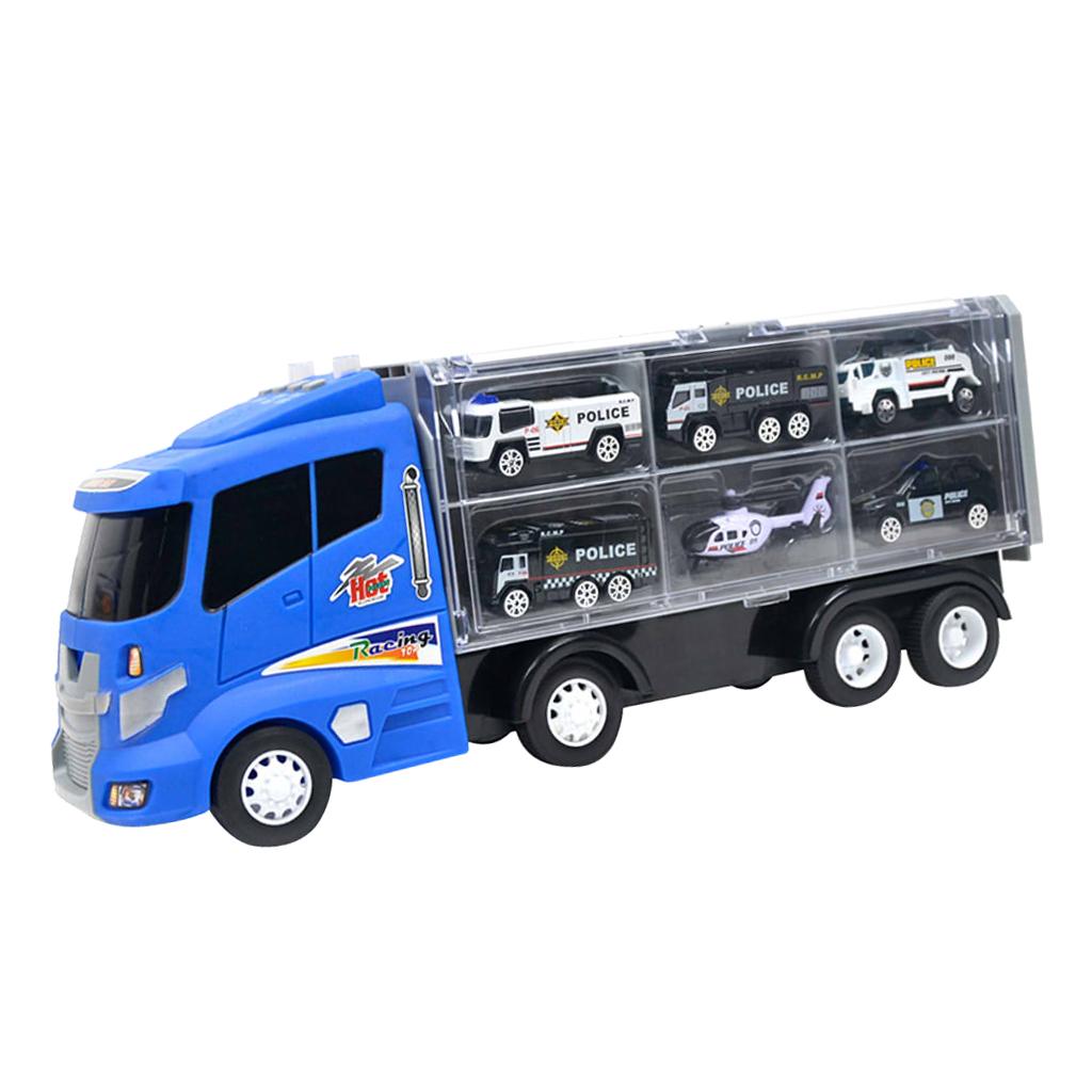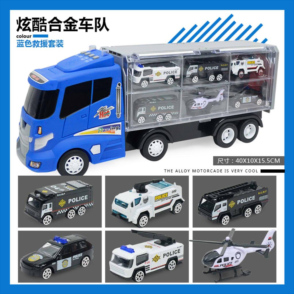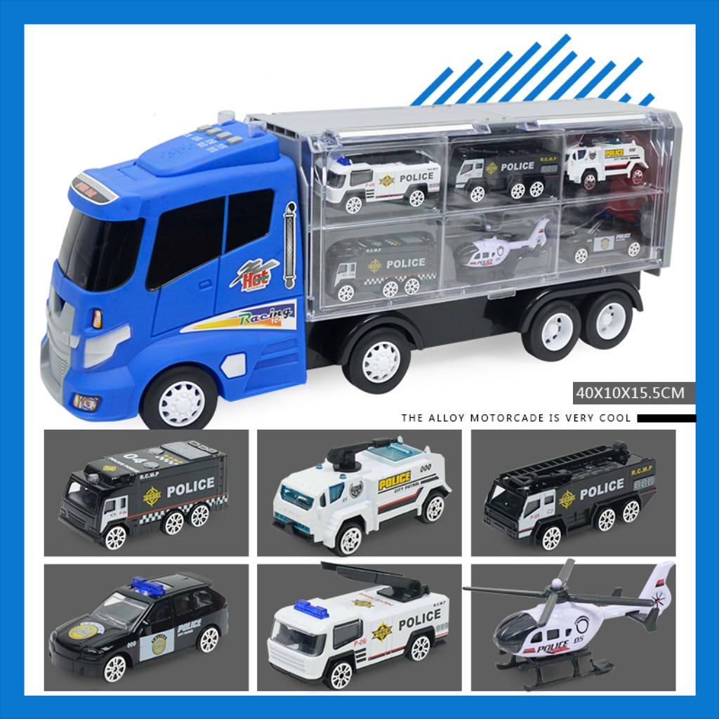 1 Container truck with 6 pieces of special police vehicle toy kit for kids toddlers early education