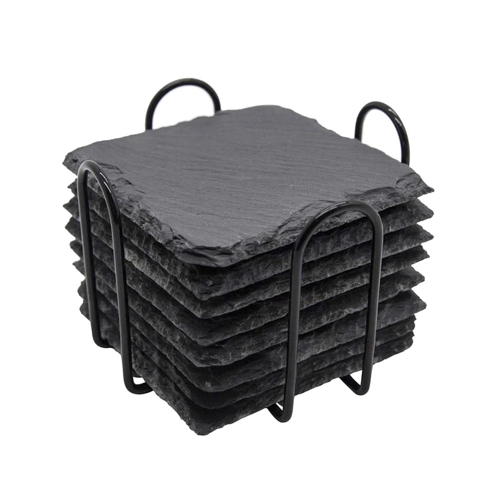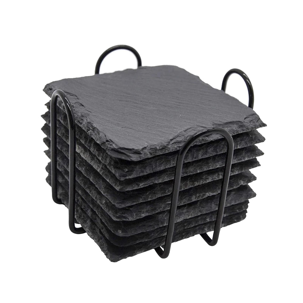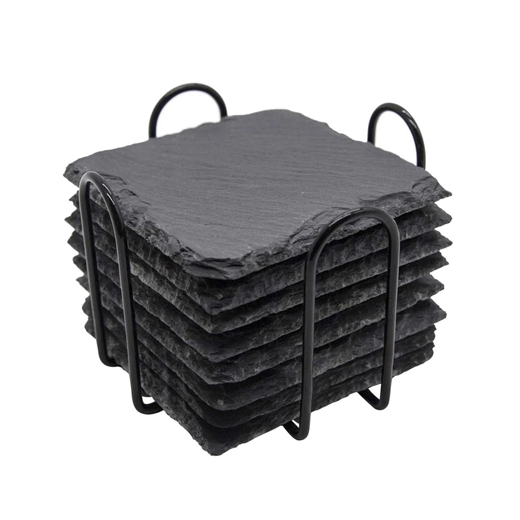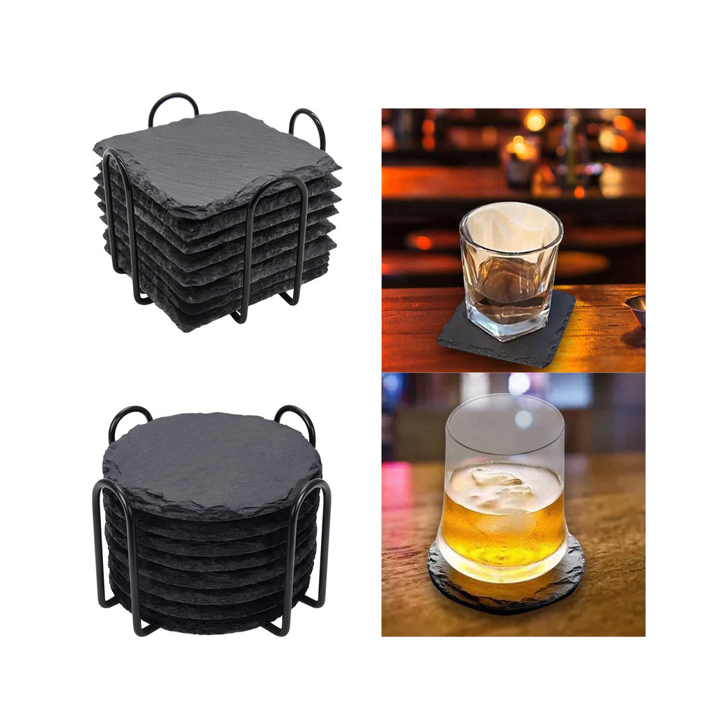 Maxbell 8x Slate Drink Coasters Tabletop Protection with Holder for Bar Kitchen Home Square
