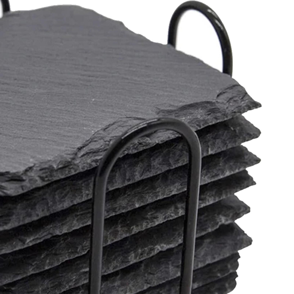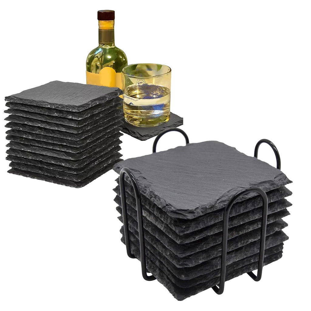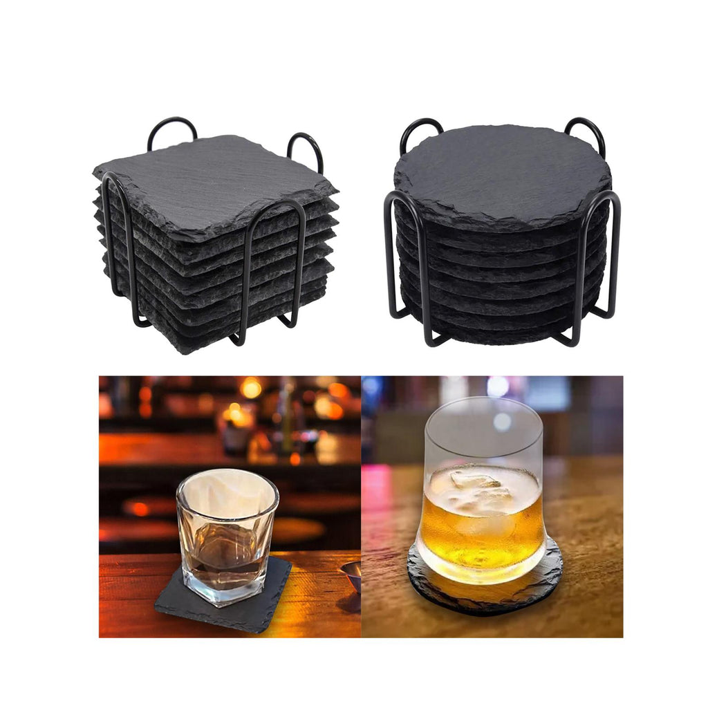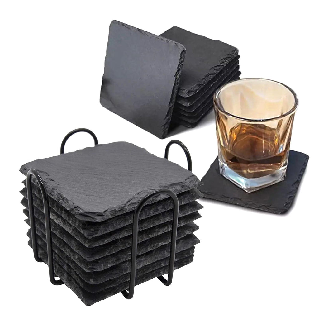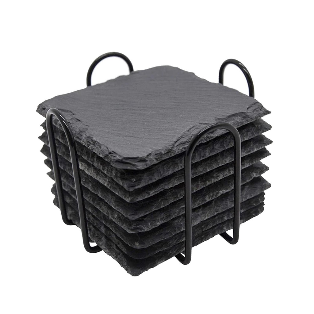 Maxbell 8x Slate Drink Coasters Tabletop Protection with Holder for Bar Kitchen Home Square