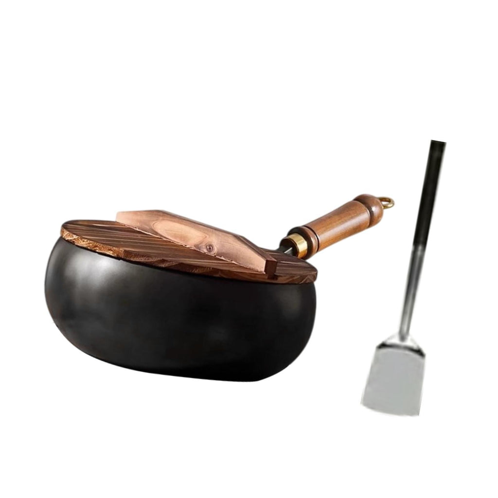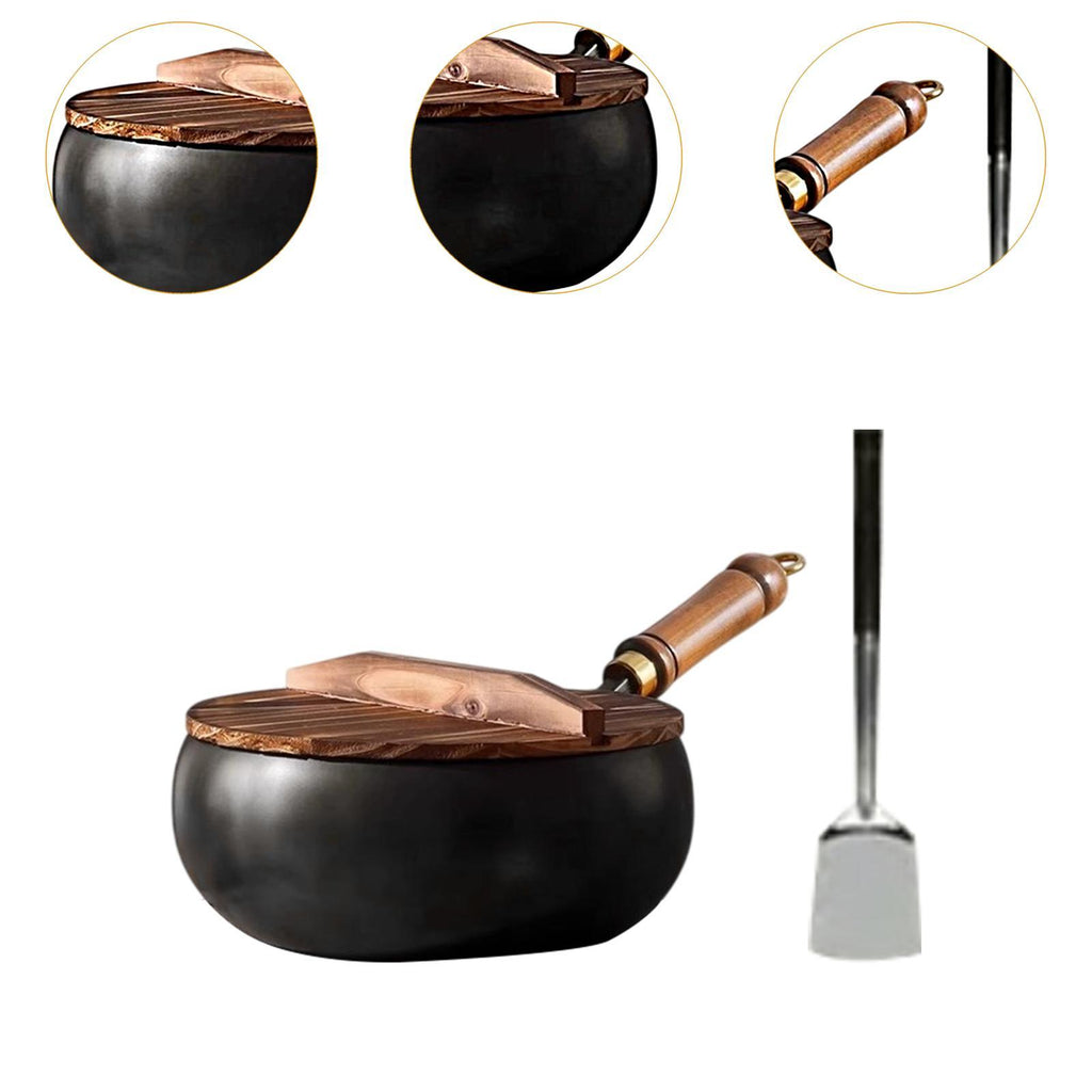 【Material】: This 9.45inch wok with Lid and Spatula is made of refined iron material, smooth and uncoated surface, Deep pot design, thick bottom and thin wall, conducts heat evenly and quickly