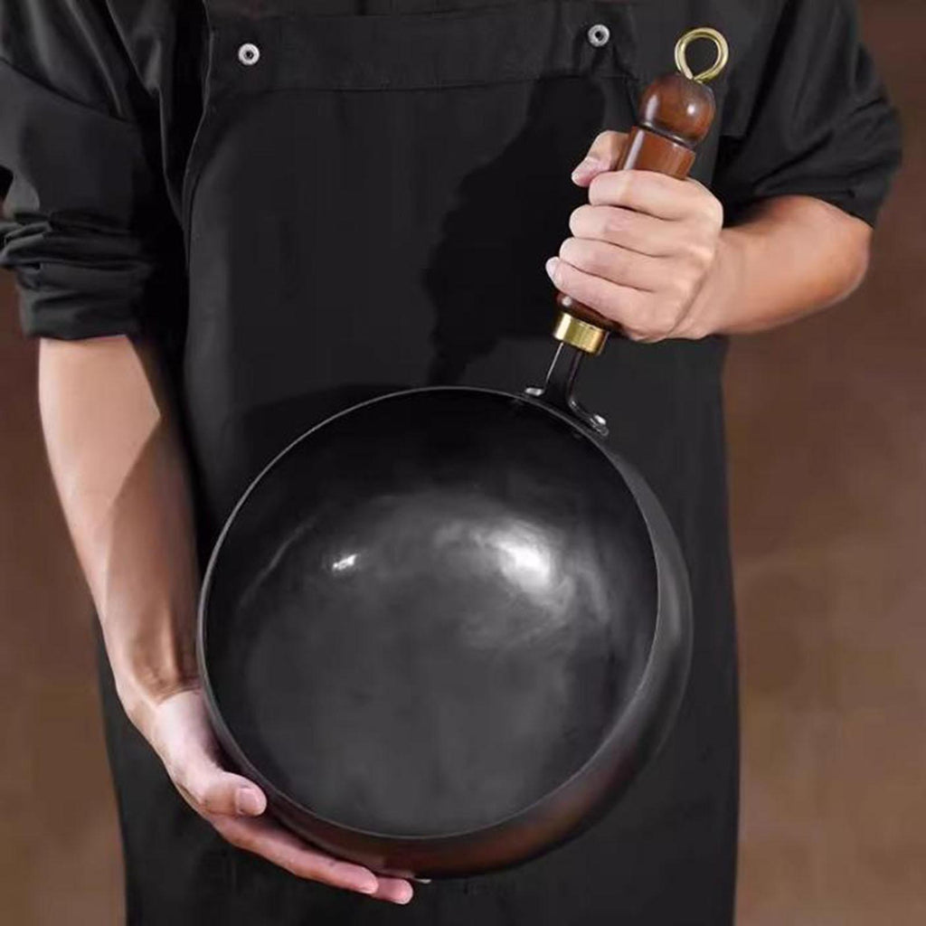 【Ergonomic handle】: Iron Wok has ergonomic handle offers comfortable grip and stays cool to the touch, preventing burns