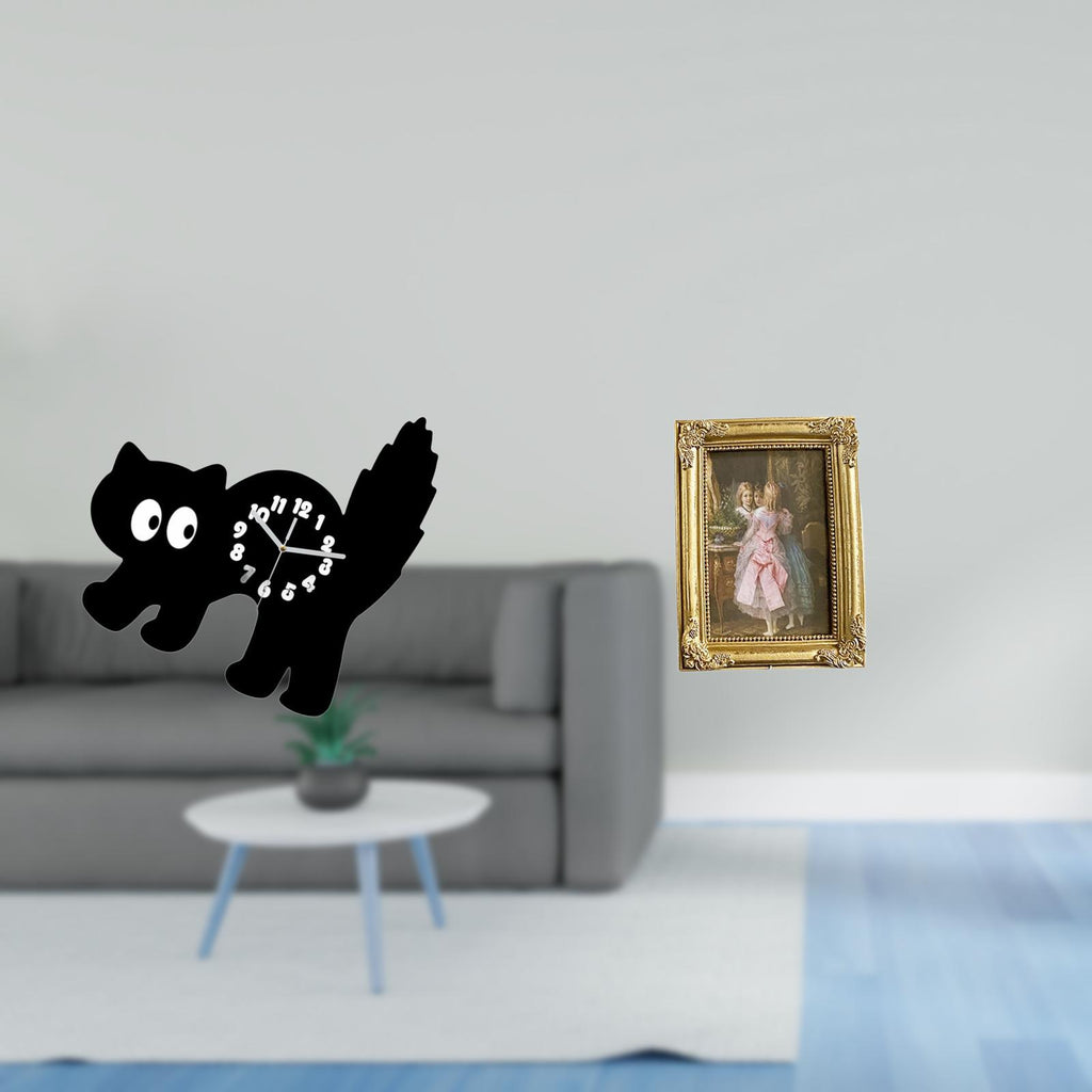 - 【Silent】 This cartoon cat clock operates silently and ensures no ticking sound for a good 2. 【Material】 Made from acrylic material this wall clock is sturdy and also a beautiful wall decoration 3. 【Versatile】 Suitable for various spaces such as living room bedroom dining room study room office school kitchen and home decor 4. 【Elegant】 Vintage and delicate appearance with perfect details this decorative frame lights your room and makes it elegant 5. 【Gift】 The clock is an gift for housewarming parties or holidays for family and friends who love cats