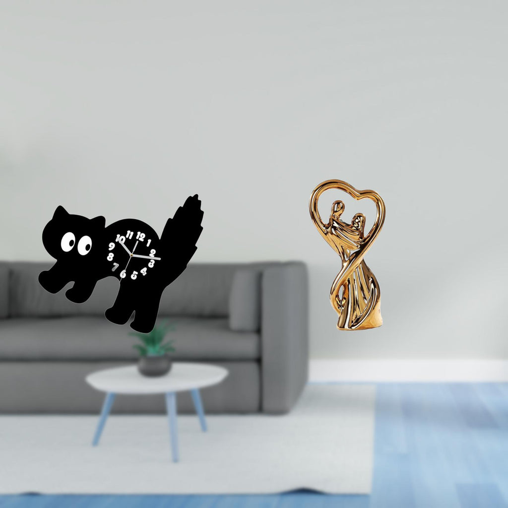 Acrylic Hanging Wall Clock Ornament for Bedroom Kitchen Living Room Study with Couple Figurine Sculpture Gift for Anniversary Family