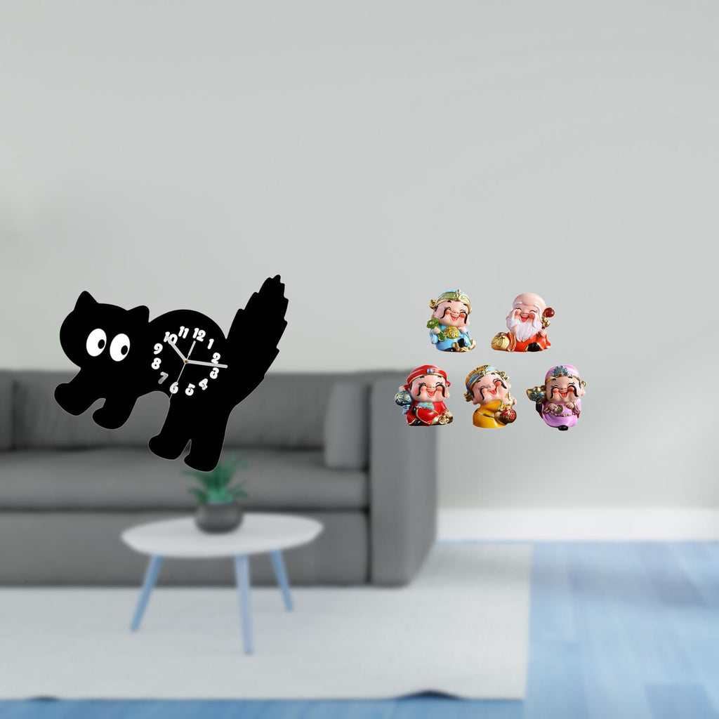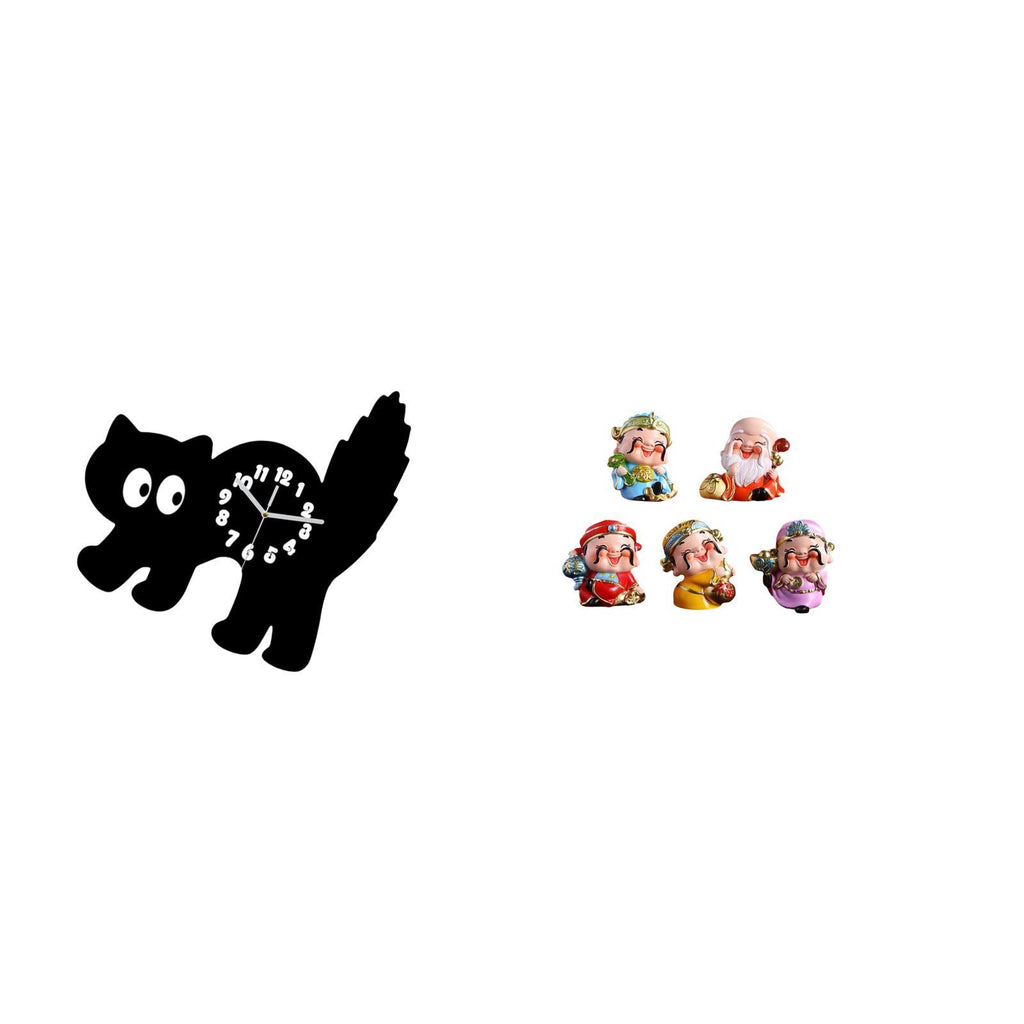 - 【Silent】 This cartoon cat clock operates silently and ensures no ticking sound for a good 2. 【Material】 Made from acrylic and resin material this wall clock and figurine are sturdy and not easy to break 3. 【Decorative】 The wall clock and fortune gods figurines are beautiful and creative for home decor 4. 【Versatile】 Suitable for living room bedroom dining room study room office school kitchen car bookshelf shelf desk cabinet 5. 【Gift】 for housewarming parties holidays New Year festivals birthdays for family friends and relatives