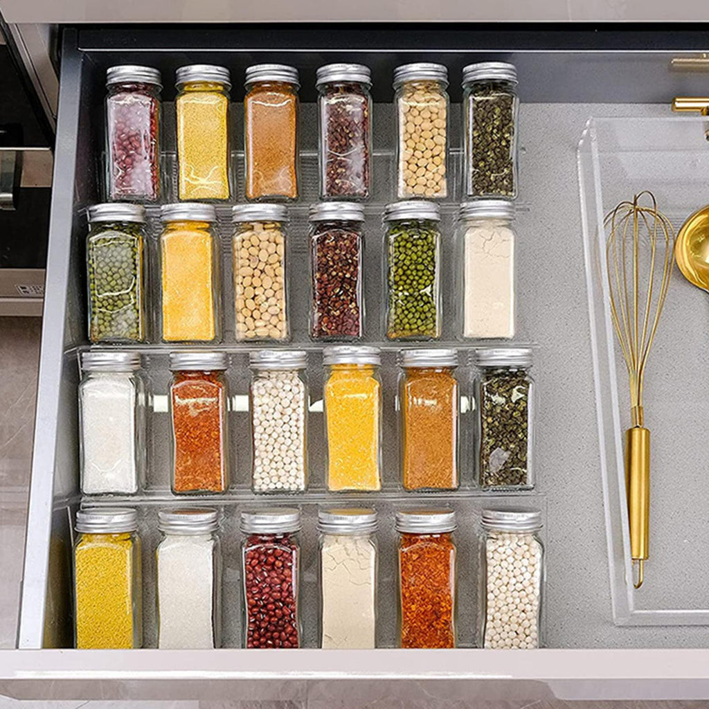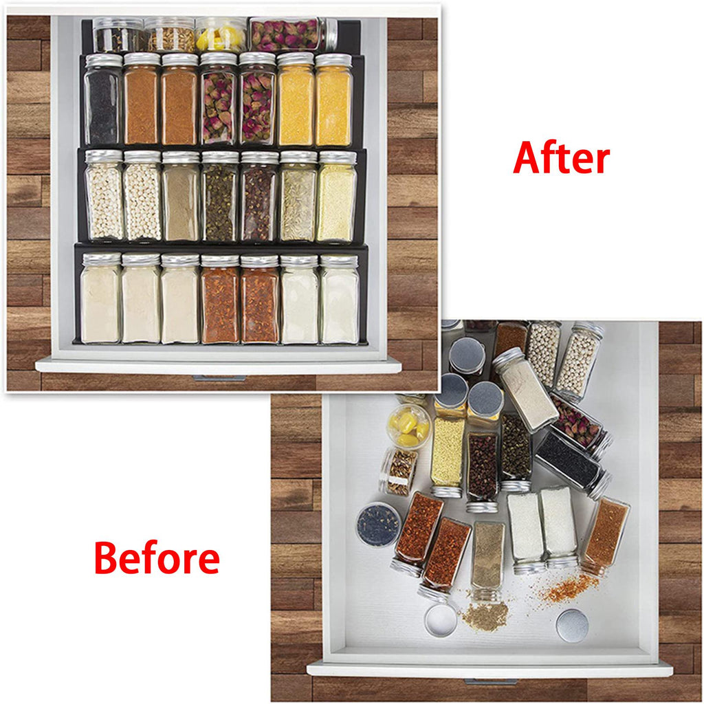 Save Space: The spice drawer organizer turns your kitchen drawer into a spacious spice bottle organizer, makes room more clean and tidy.