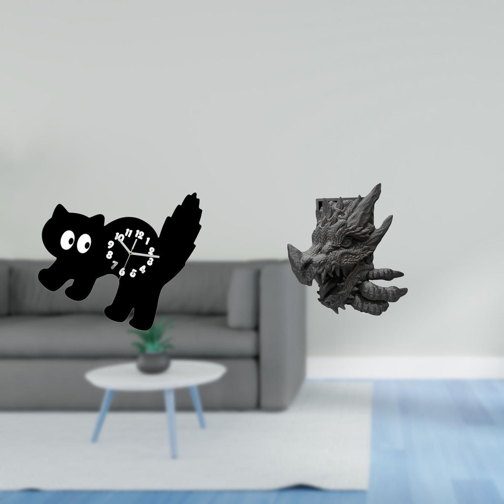 - 【Silent】 This clock operates silently and ensures a peaceful environment for 2. 【Material】 Made from sturdy acrylic and resin material which is stable and not easy to break 3. 【Decorative】 This wall clock and animal sculpture are beautiful decorations for home and office 4. 【Versatile】 Suitable for living room bedroom dining room study room office school kitchen and bookshelves 5. 【Gift】 This item is an gift for family friends and relatives who love cats and creative ornaments
