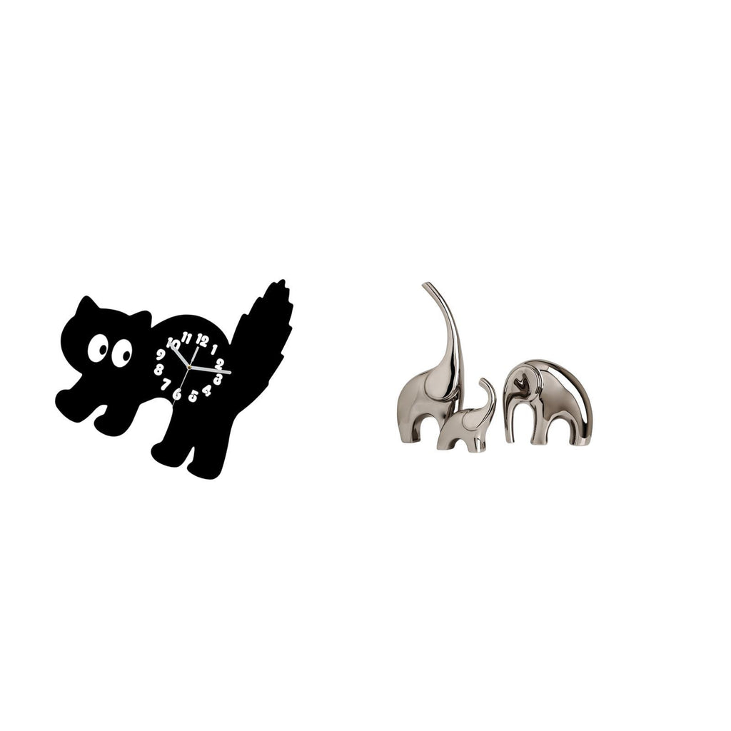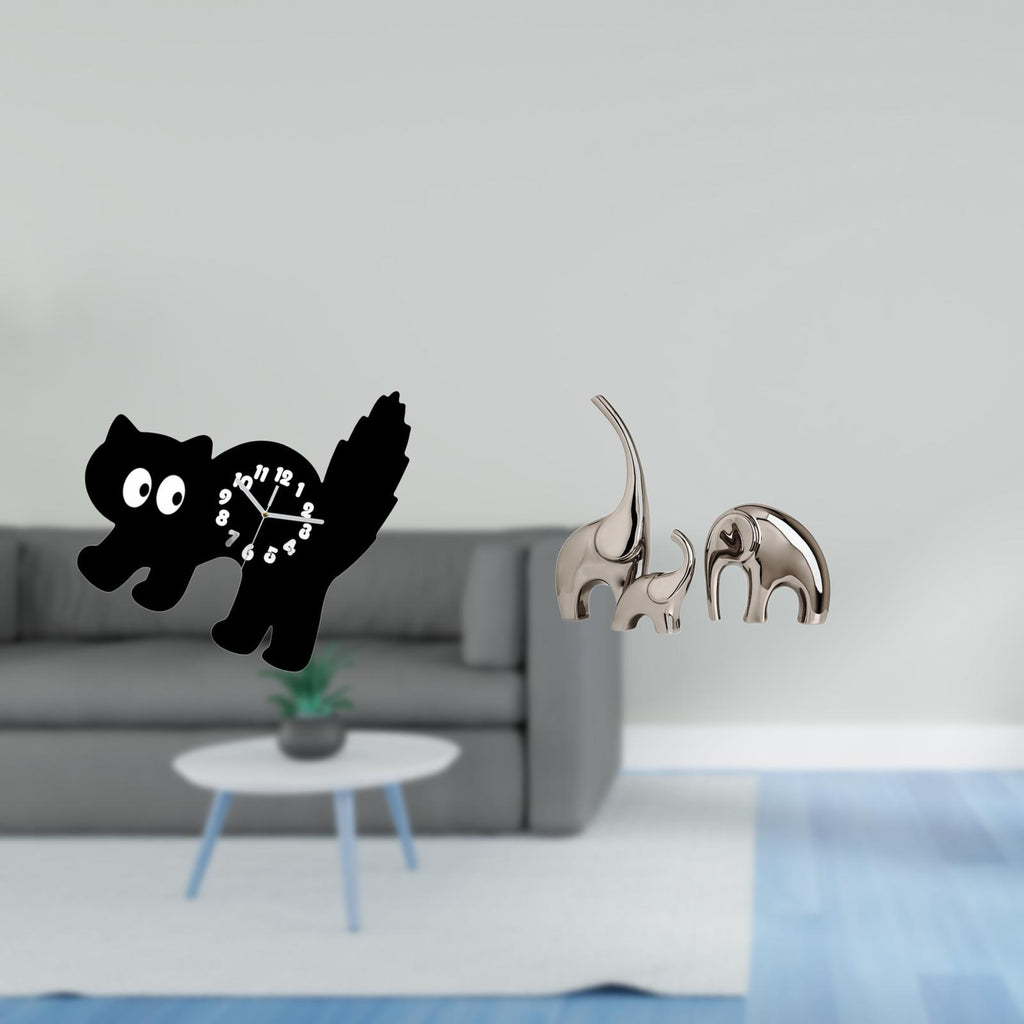 Acrylic Wall Clock and Ceramic Elephant Figurines Decorative Ornaments for Study Bedroom Kitchen Living Room Home Shelf TV Stand
