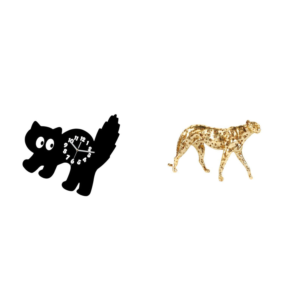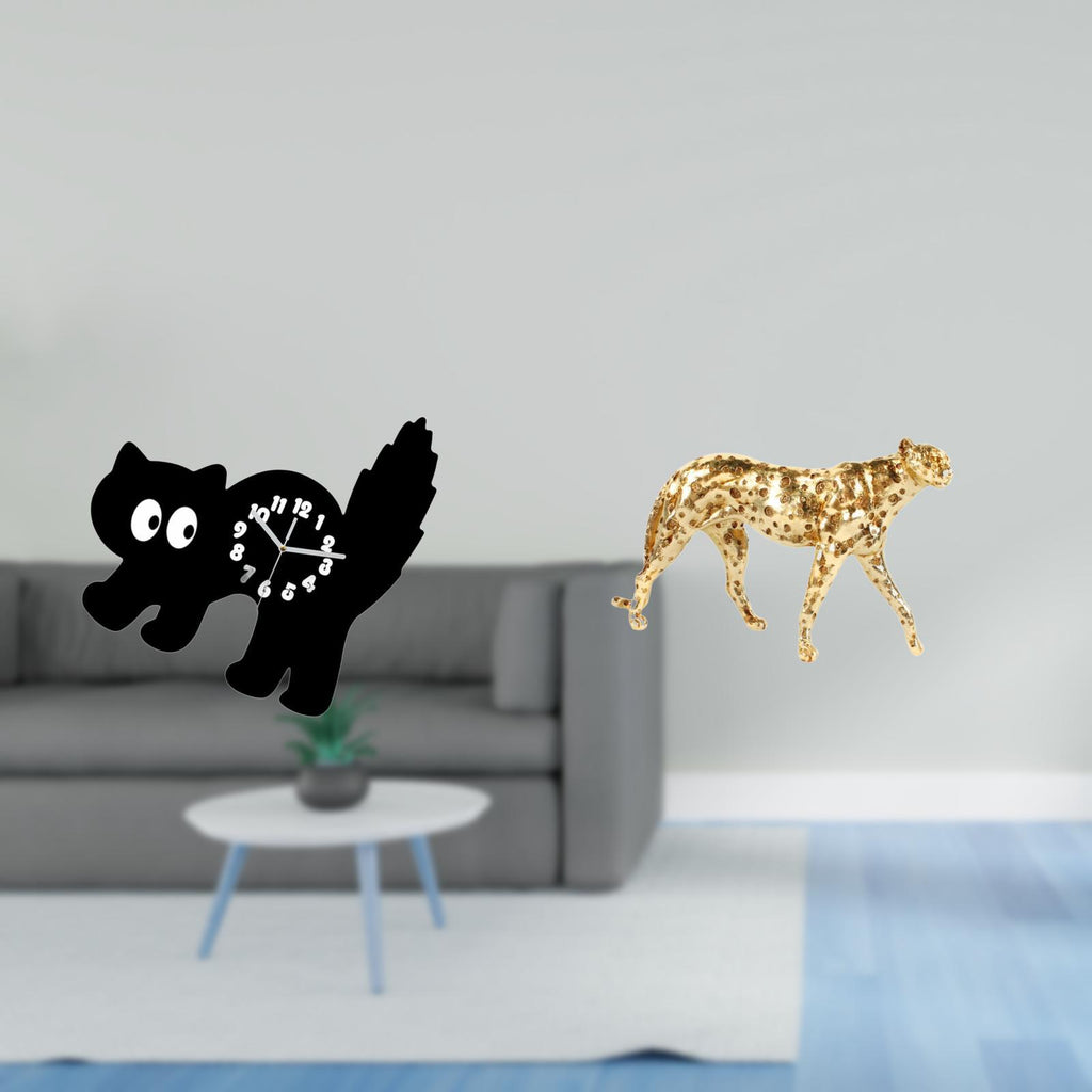 Acrylic Wall Clock and Gold Cheetah Figurine Decorative Hanging Ornament for Study Bedroom Kitchen Living Room Office Home Decor Tabletop Centerpiece