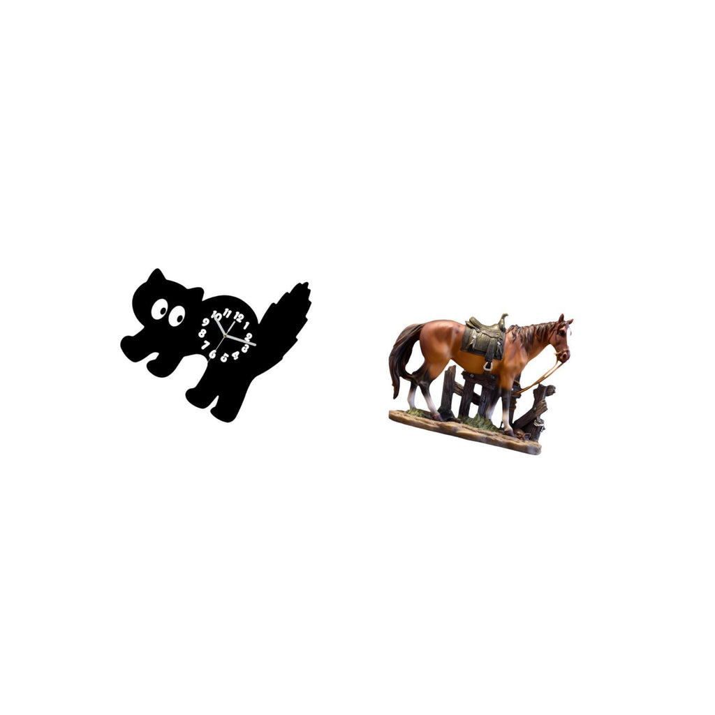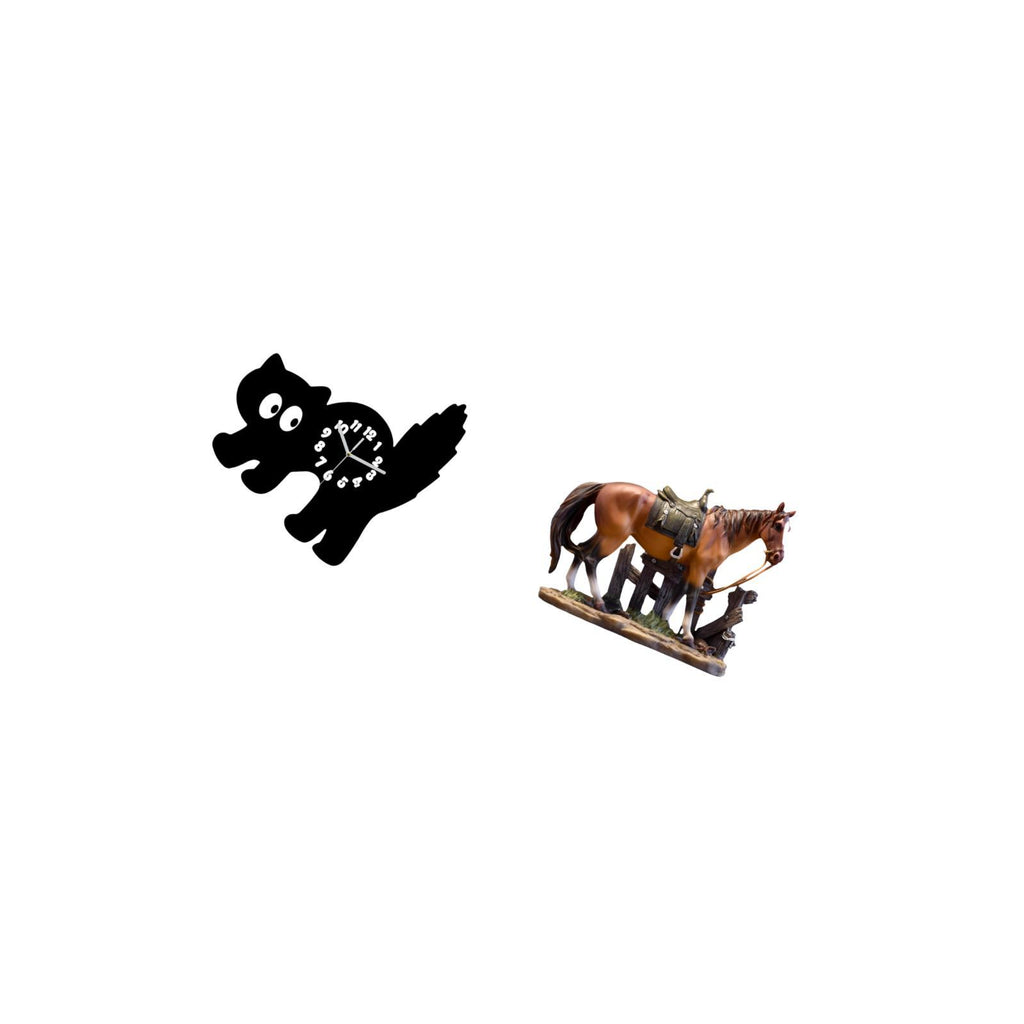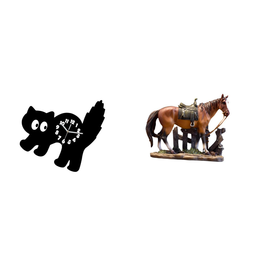 - 【Silent】 The clock operates quietly and does not disturb 2. 【Material】 The wall clock is sturdy and resistant to fading and the horse statue is and lightweight 3. 【Decoration】 The clock and horse statue are both beautiful decorations for walls shelves desks and cabinets 4. 【Versatile】 The clock and horse statue are suitable for living rooms bedrooms offices kitchens and cafes 5. 【Gift】 Both the clock and horse statue are gifts for housewarming parties holidays weddings and birthdays