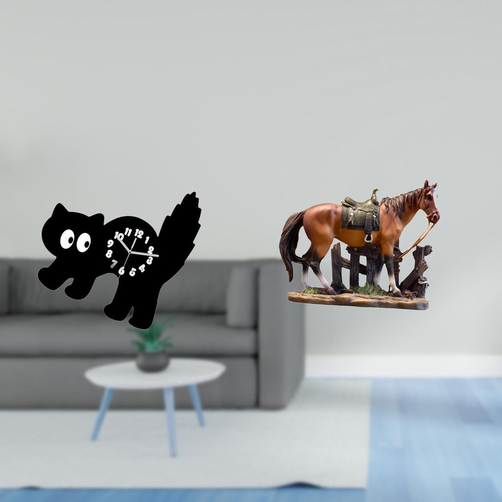 Acrylic Wall Clock and Horse Statue Art Ornament for Study Bedroom Kitchen Living Room Office Home Decor Animal Lovers Collection