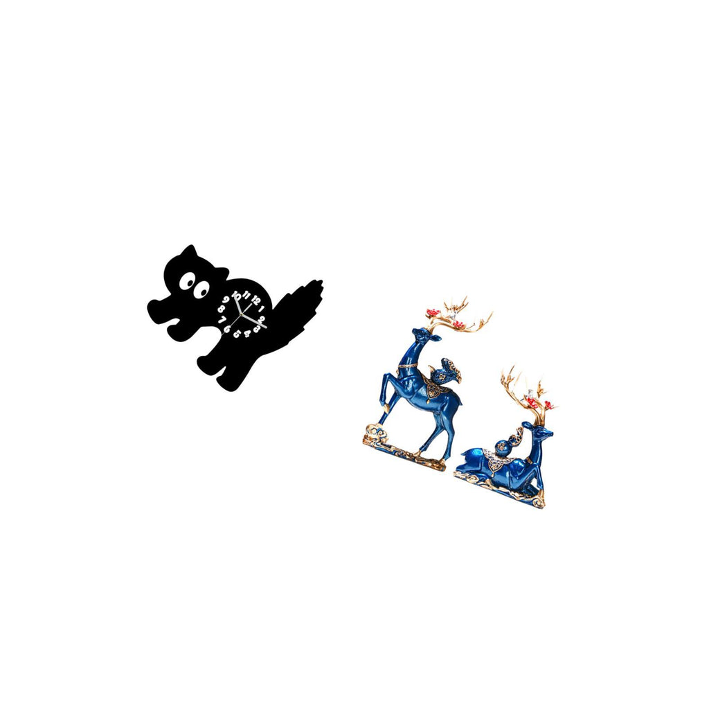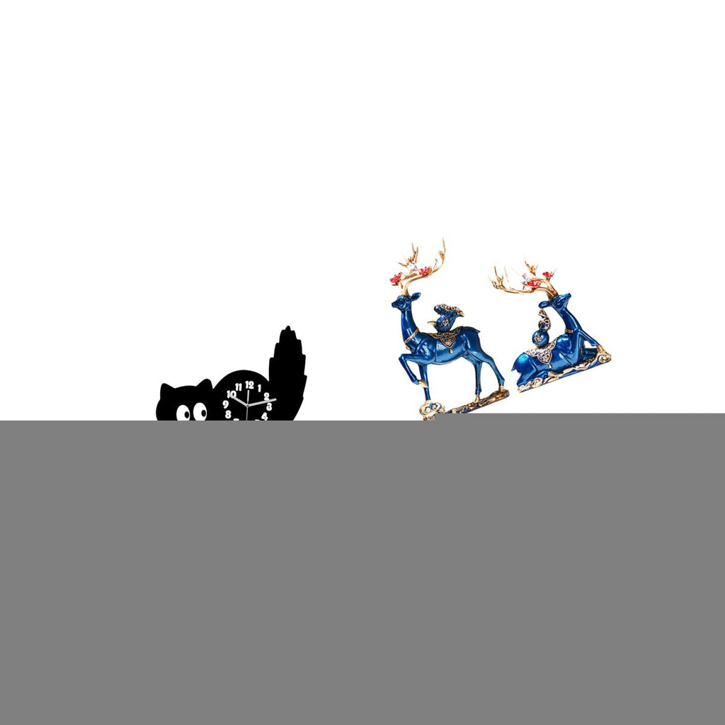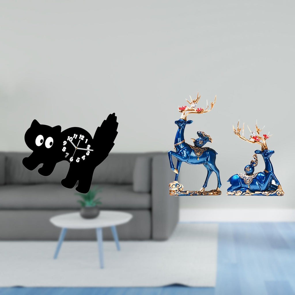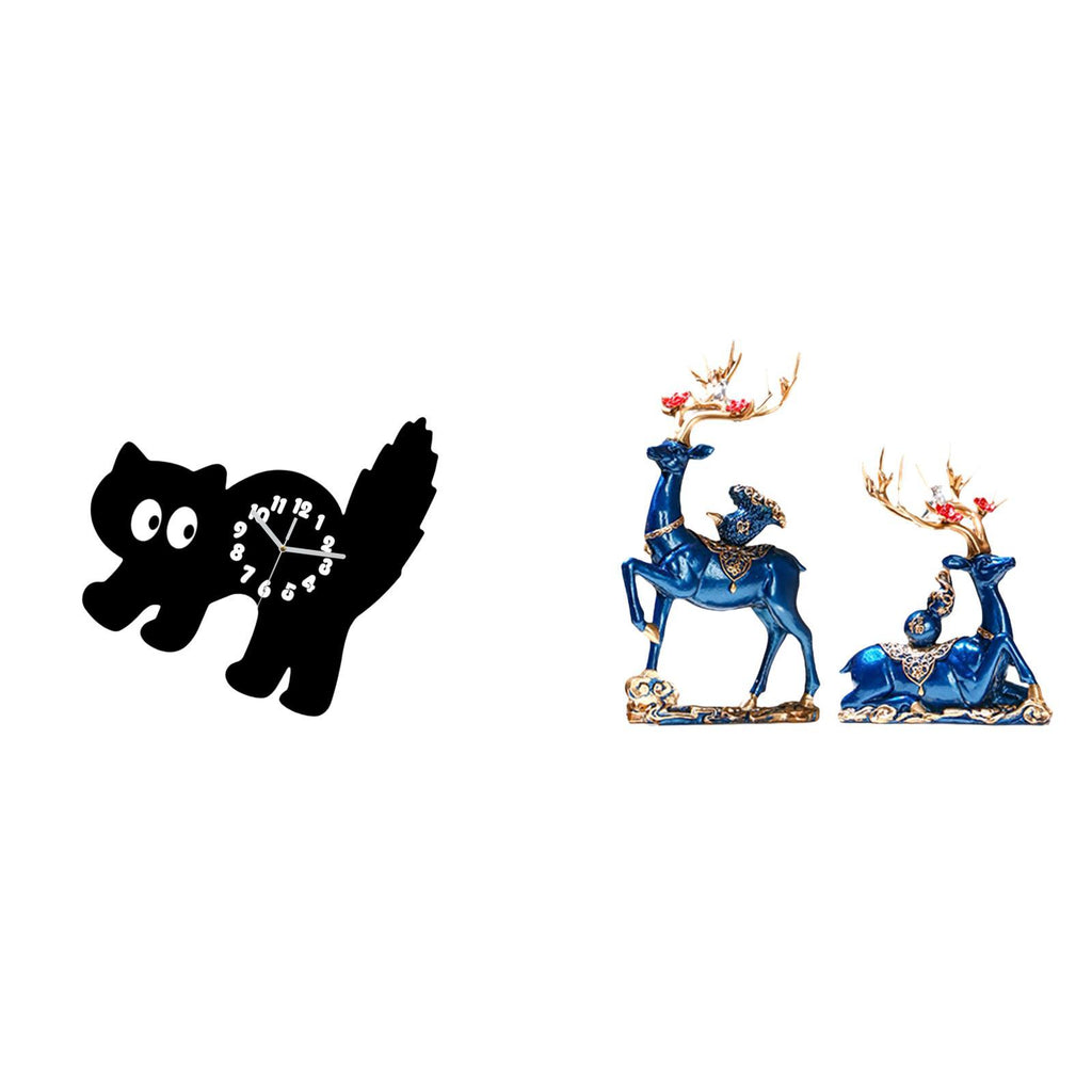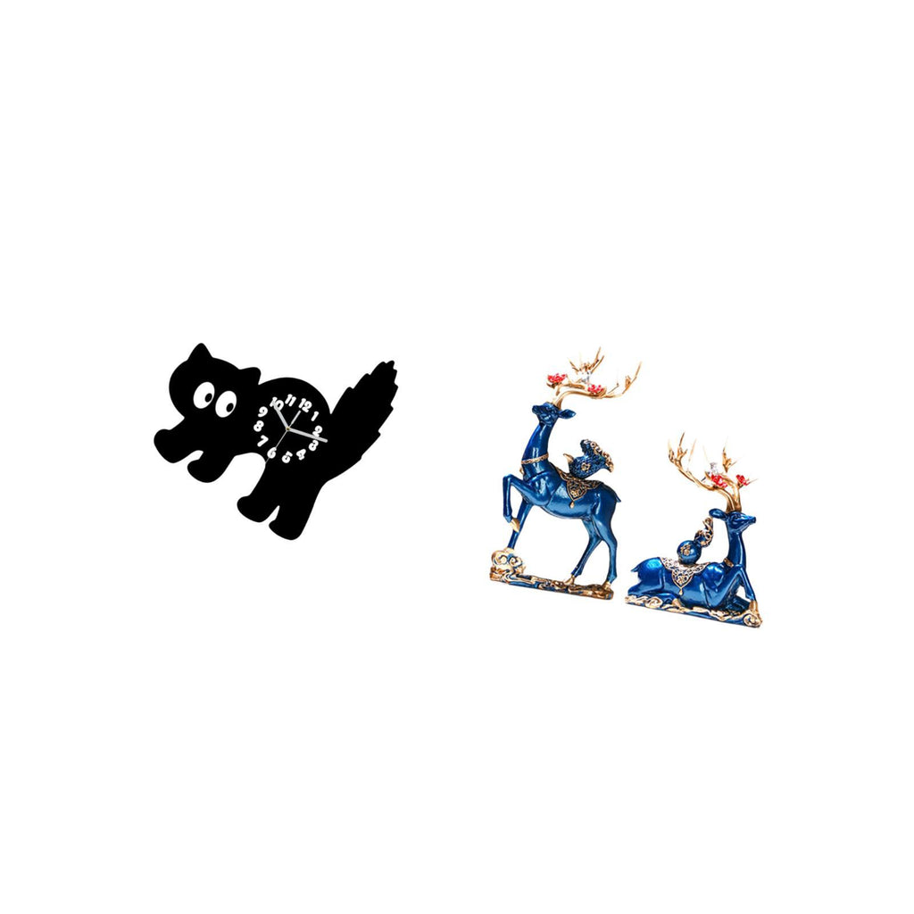 Acrylic Wall Clock and Reindeer Resin Statue Set for Living Room Bedroom Kitchen Study Kid Room Fireplace Tabletop Home Decor Collection