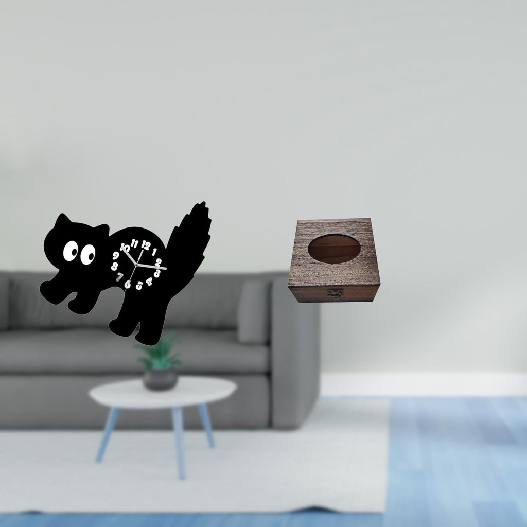 - 【Silent】 The cartoon cat clock operates quietly and is suitable for 2. 【Material】 The wall clock is made from acrylic and is sturdy and resistant to fading 3. 【Versatile】 The clock and tissue box can be used in living room bedroom dining room study room office kitchen and home decor 4. 【】 The tissue box is crafted from high quality wood and is resistant to deformation 5. 【Gift】 The clock is for housewarming parties or holidays for family and friends