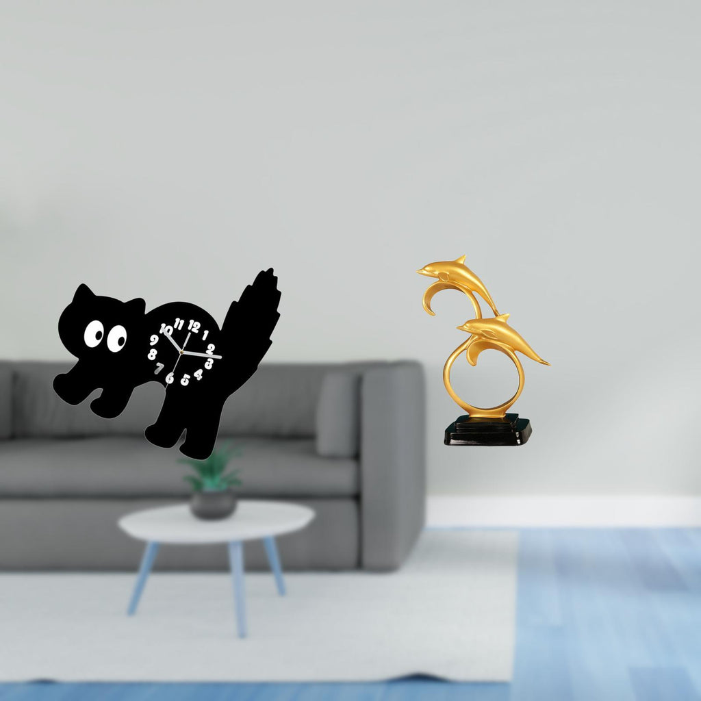 - 【Material】 The clock is made from acrylic material and the dolphin figurine is made of resin material both are sturdy and 2. 【Decoration】 The wall clock and dolphin figurine are great for home decor and can enhance your living room bedroom or office 3. 【Gift】 Both the clock and dolphin ornament are gifts for family and friends for housewarming or holidays 4. 【Versatile Use】 The clock and dolphin figurine are suitable for various spaces such as living room bedroom and desktop 5. 【Design】 The clock features a cute cartoon cat and the dolphin figurine has creative vivid styling