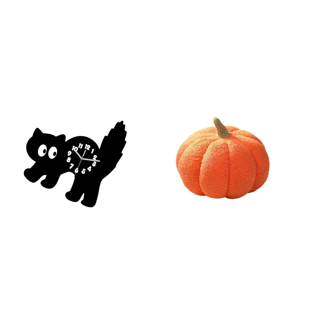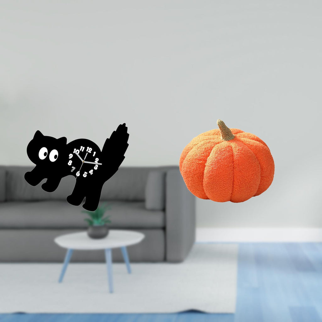 Acrylic Wall Clock Ornament and Halloween Pumpkin Plush Pillow Decorative Cushion for Study Bedroom Living Room Kitchen Sofa Decor