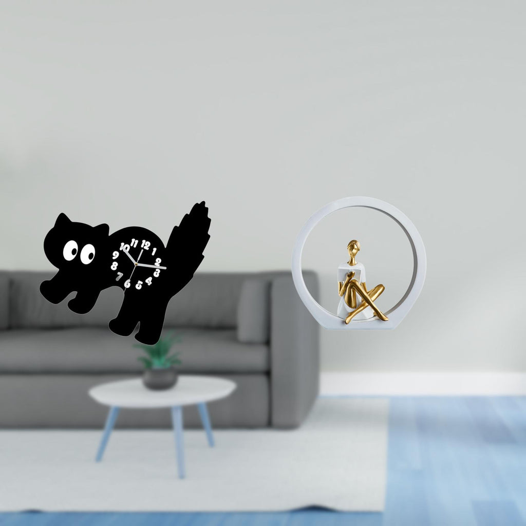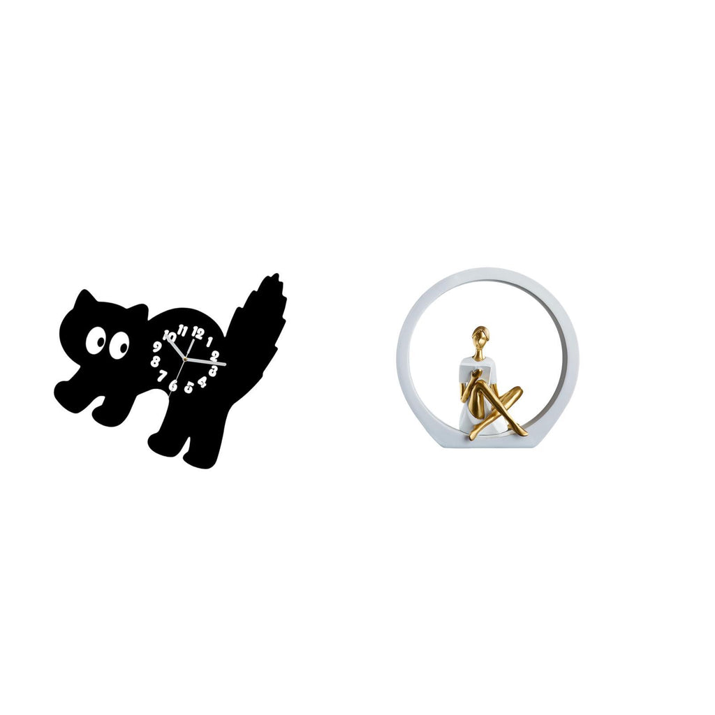 - 【Silent】 The clock operates quietly and does not disturb 2. 【Material】 The clock is made from acrylic and is sturdy and resistant 3. 【Decoration】 The clock and figurine enhance the aesthetic of living room bedroom dining room study room office school kitchen home library café or tea room 4. 【Versatile】 The clock and figurine are suitable for placement on desks tables bookshelves or bedside table 5. 【Gift】 The clock and figurine are gifts for family friends and anyone who appreciates cats or artistic decor