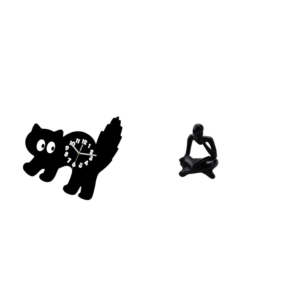 Acrylic Wall Clock Ornament for Study Bedroom Kitchen Living Room with Abstract Thinker Statue Decoration for Tabletop Shelf Office Bookshelf