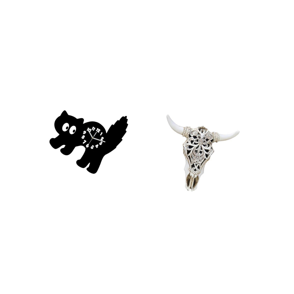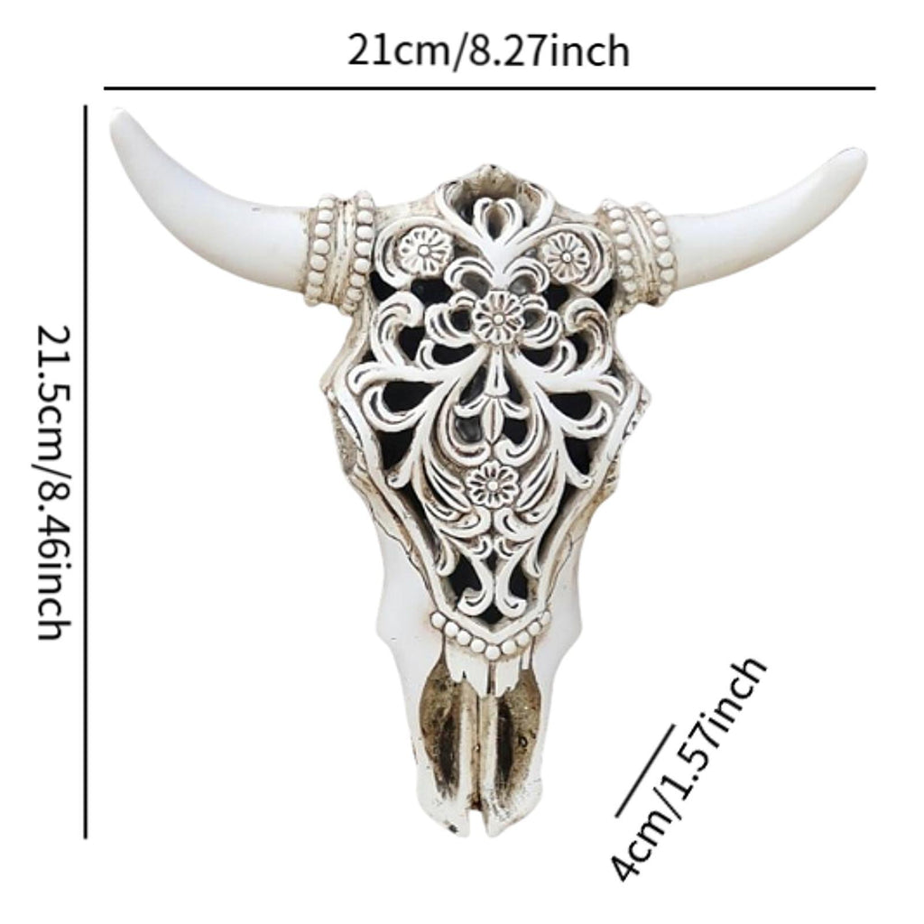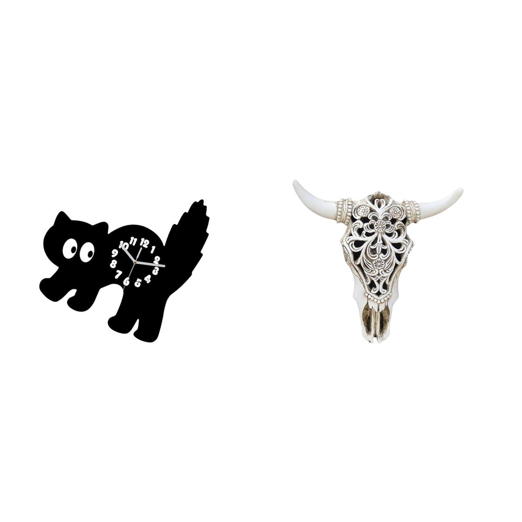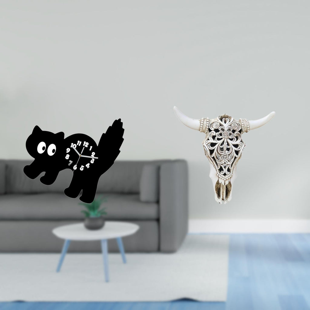 Acrylic Wall Clock Ornament for Study Bedroom Kitchen Living Room with Tribal Bull Head Sculpture Hanging Art Decor for Office Farmhouse