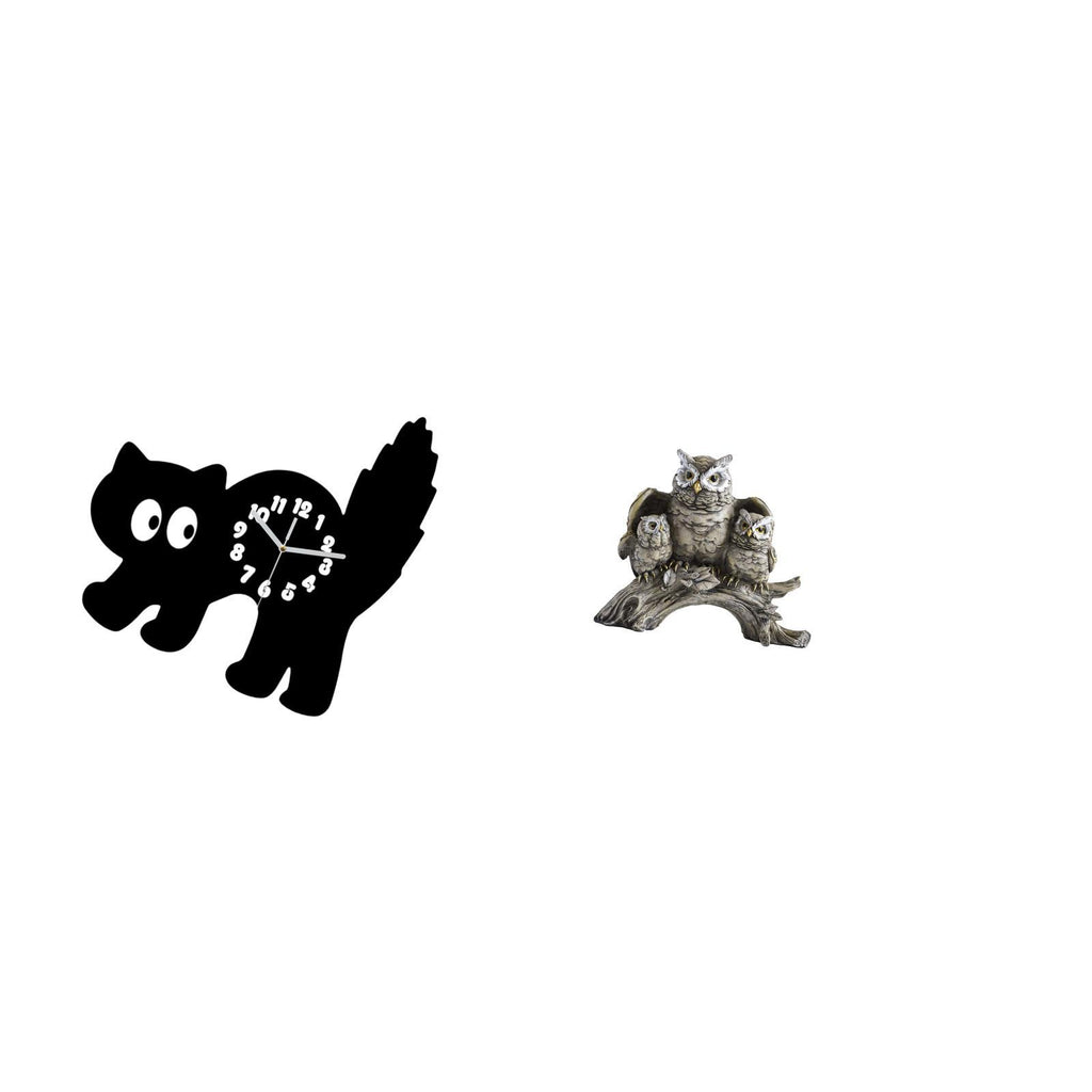 - 【Silent】 Cute cartoon cat clock operates silently ensuring no ticking sound suitable for 2. 【Material】 Made from acrylic material and high quality resin sturdy eco friendly and 3. 【Decorative】 Wall clock and owl statue add beauty and artistic atmosphere to any setting and room 4. 【Versatile】 Suitable for living room bedroom dining room study room office kitchen mantel bookshelf bar cabinet entryway tabletop 5. 【Gift】 gift for housewarming parties holidays birthdays weddings for family and friends who love cats and owls