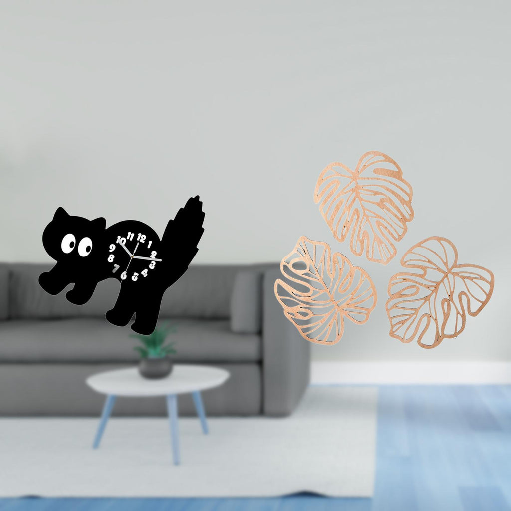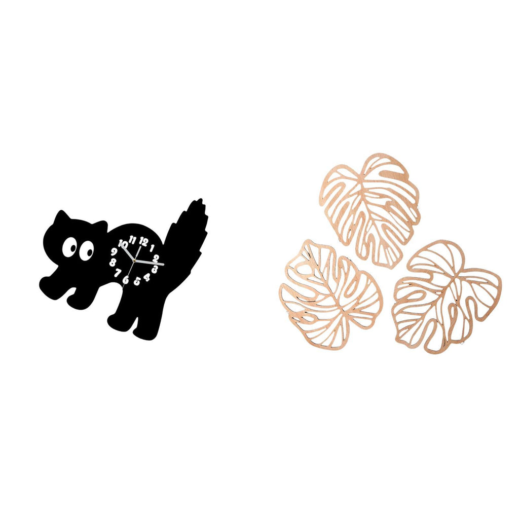 - 【Silent】 This clock operates quietly and is suitable for 2. 【Material】 Made from sturdy acrylic and wood material for long term use 3. 【Versatile】 Suitable for living room bedroom dining room study room office kitchen and home decor 4. 【Design】 Features a cute cartoon cat and stylish palm leaves with a three dimensional look 5. 【Gift】 for housewarming parties holidays weddings and festivals for family and friends