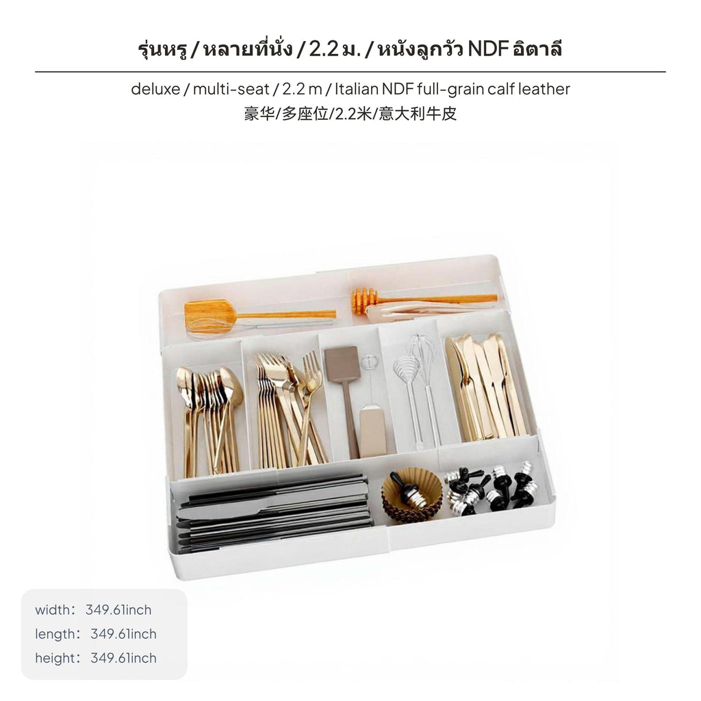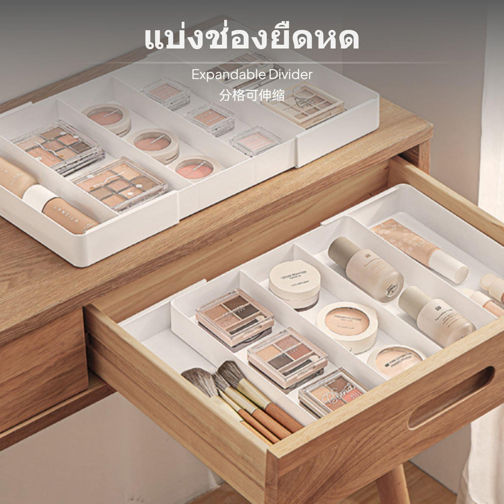 [adaptable Drawer Organizer] This adjustable drawer organizer with 7 compartments and 2 removable dividers offers optimal storage for kitchen utensils, cosmetics, and small office supplies.[Customizable & Expandable] Features a four-direction expandable design, allowing horizontal and upright adjustment from 27cm to 51cm to fit various drawer sizes for personalized organization.[Modern Minimalist Design] The sleek black color and simple Japanese-inspired design make this box easily integrate into kitchen, bedroom, or workspace environments, elevating the interior aesthetic.[Sturdy framework with Easy Cleaning] Made from premium PET material with reinforced groove system, ensures stable partitioning and tidiness; detachable parts make cleaning simple.[Multi-Scenario Storage Solution] Whether used for tableware, stationery, or cosmetics, every item has a dedicated space, eliminating clutter and simplifying everyday routines.Specification: