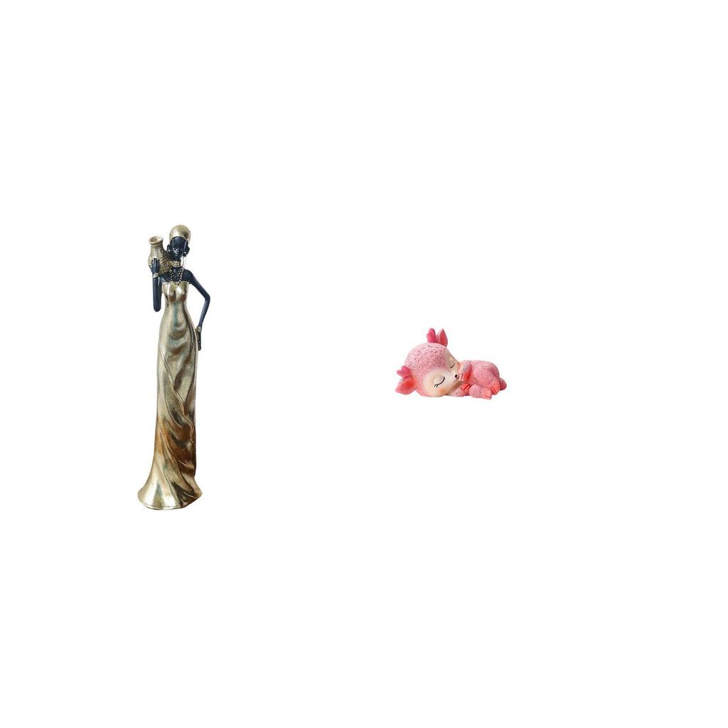 1 African Tribal Lady Statue Resin Ornament 1 Sleeping Deer Tabletop Statue