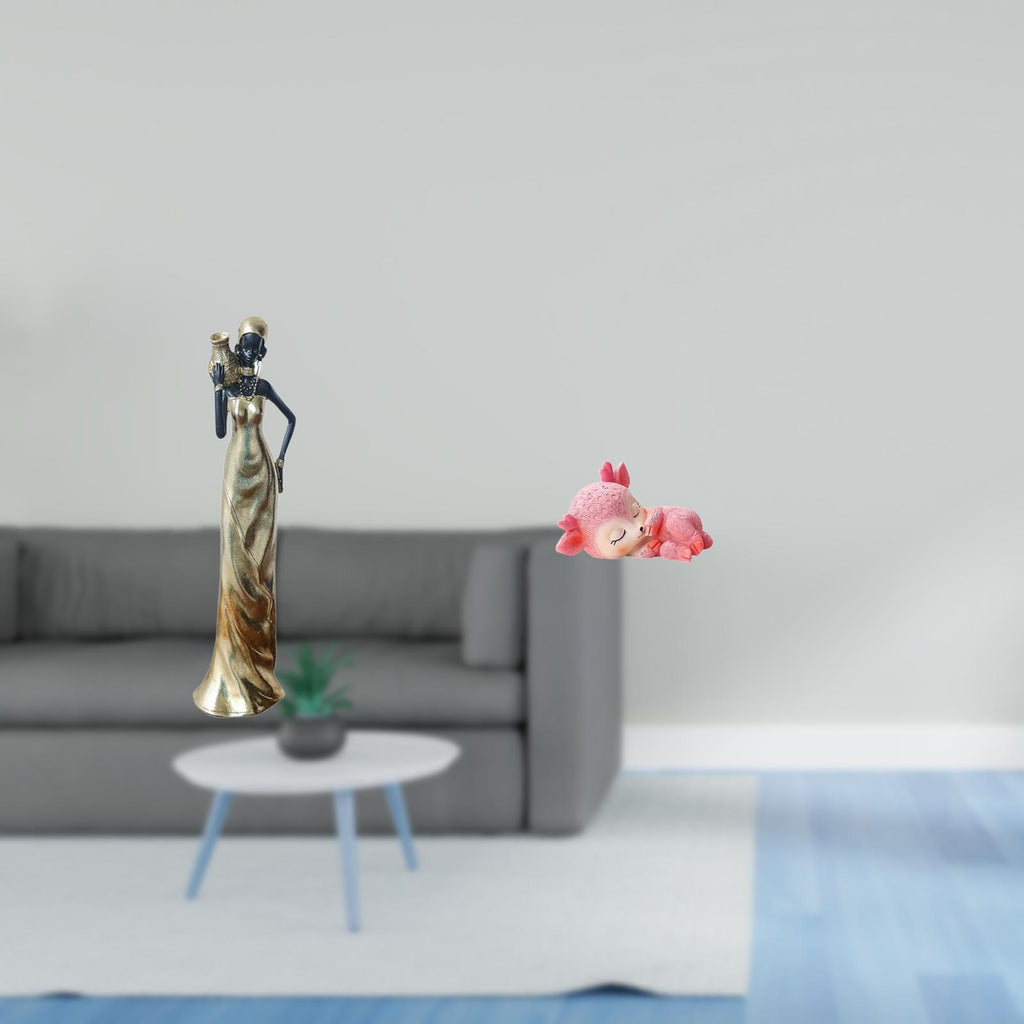African Tribal Lady Sculpture Resin Sleeping Deer Figurine Lightweight Decorative Home Decor for Hotels Kitchen Dining Tabletop Handicraft
