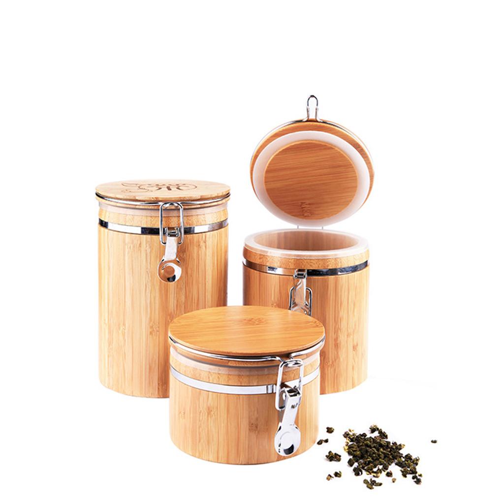 Premium quality bamboo airtight vacuum sealed coffee canister set, enjoy fresh hot tea coffee