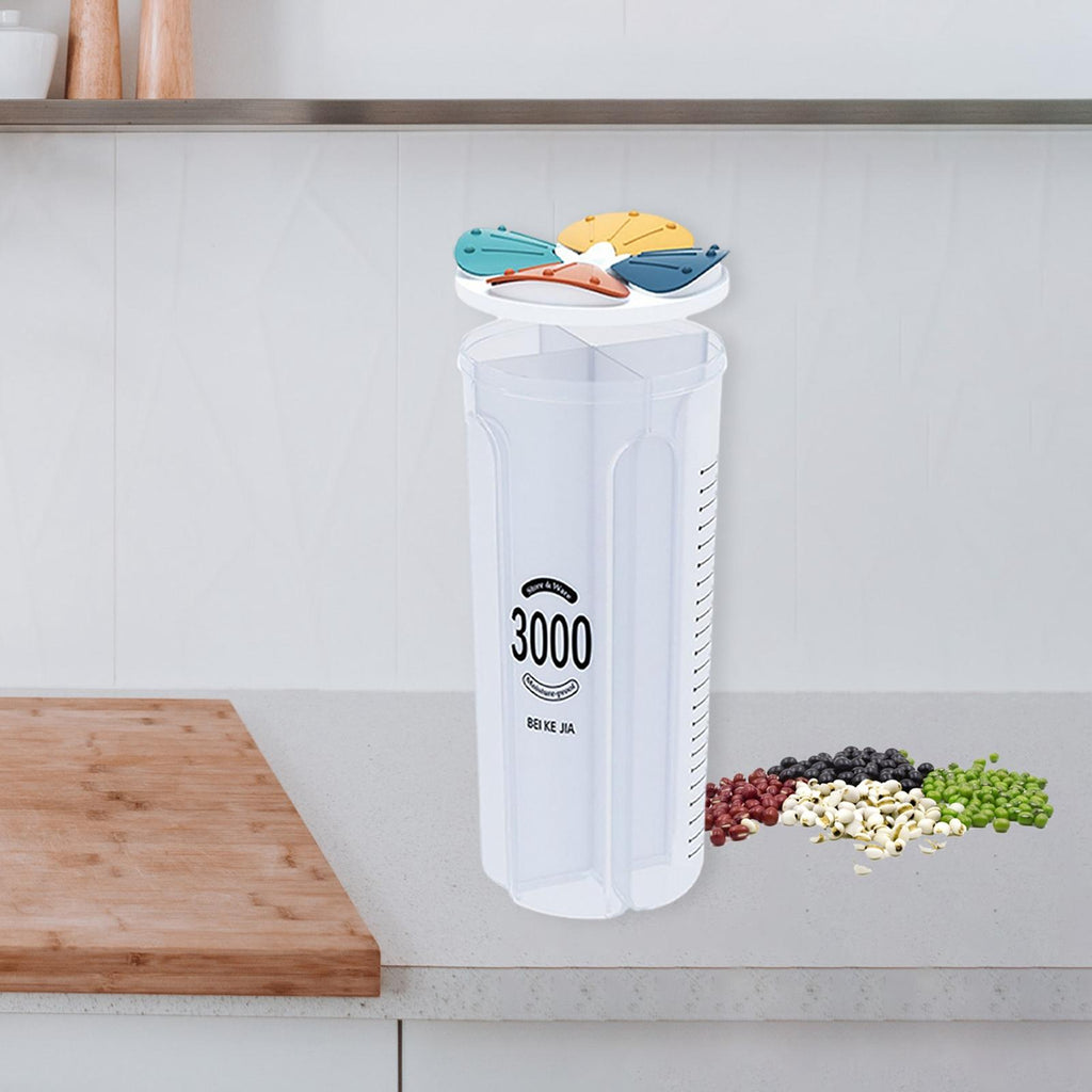 Maxbell Airtight Cereal Storage Container BPA Free 4 Grids for Sesame Rice Cereal 3L
