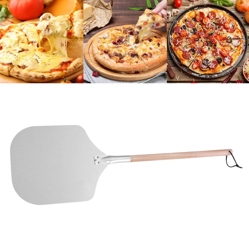Easy to Use:Before using the pizza scoop,the Aluminum Metal Pizza Peel Paddle are often sprinkled with flour, cornmeal, or milled wheat bran, to allow baked goods to easily slide onto and off them.