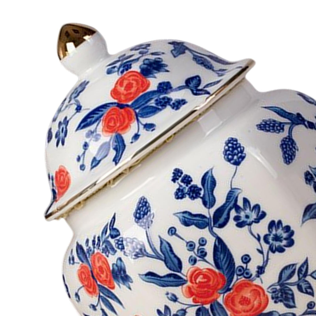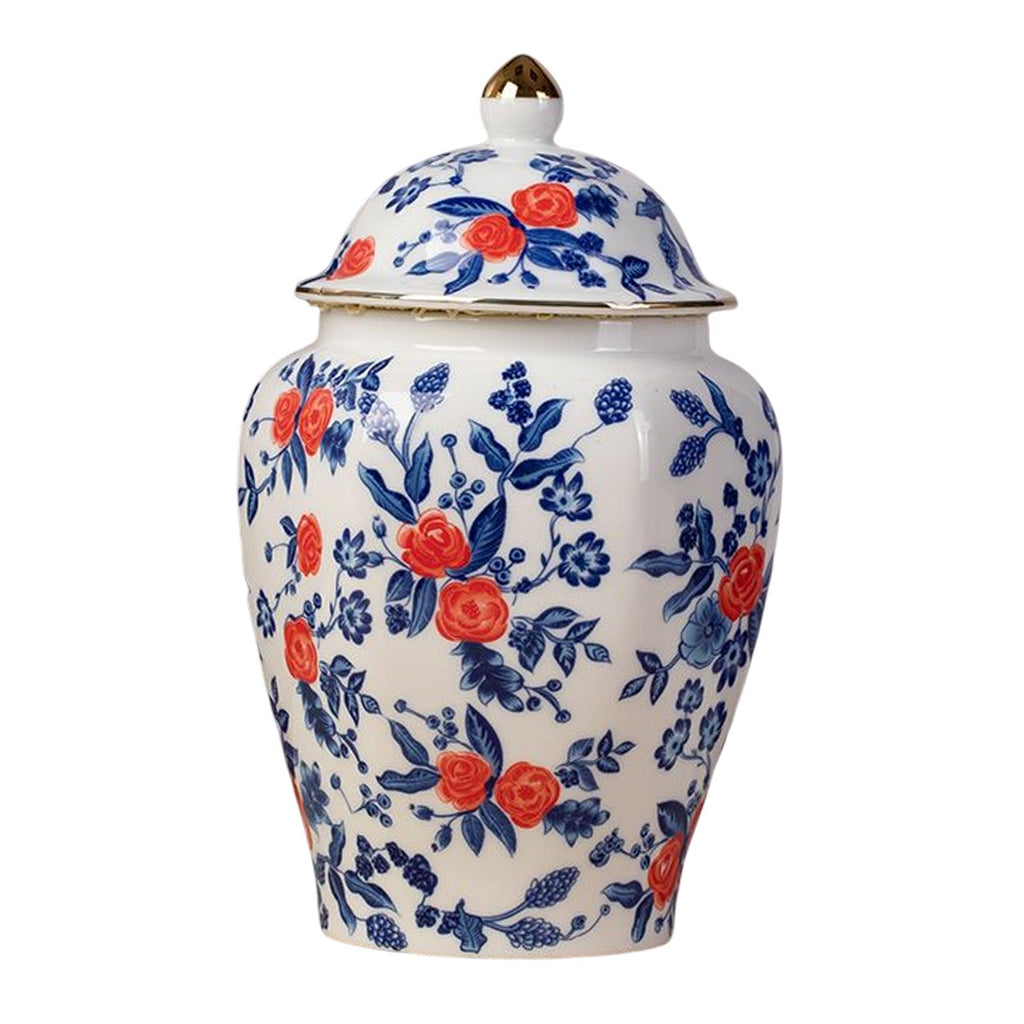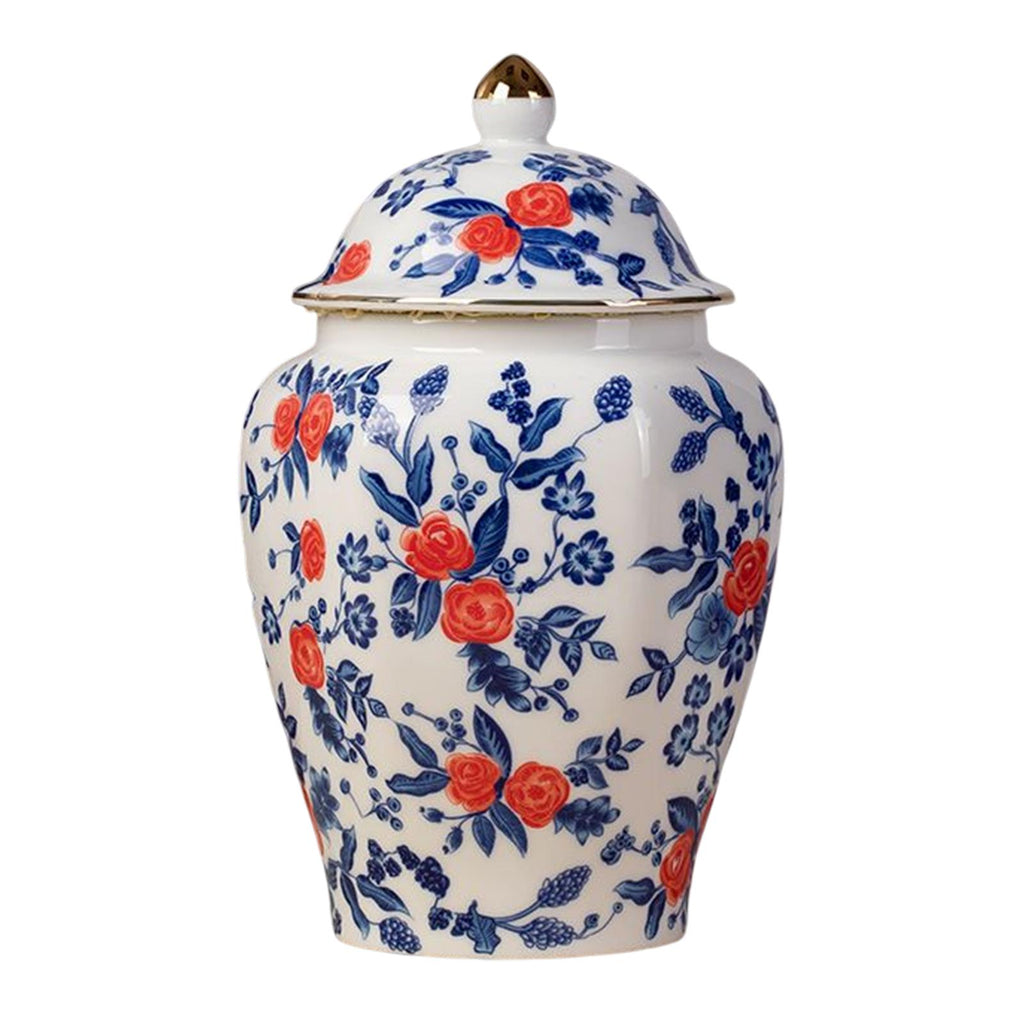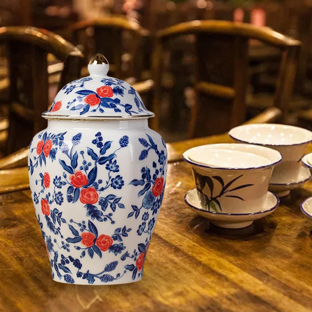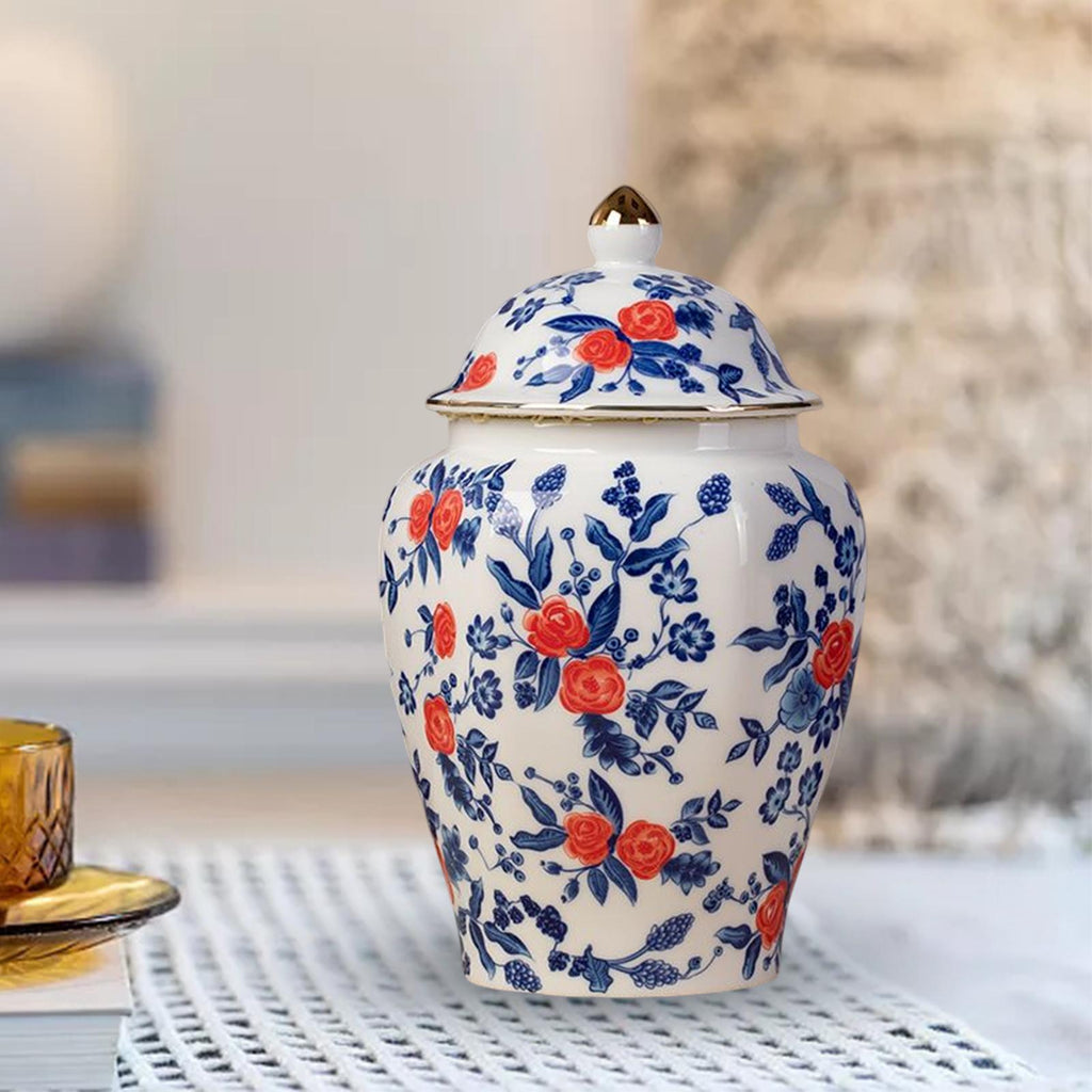 Maxbell Antique Ceramic Ginger Jar Floral Arrangement with Lid Temple Jar Handmade Style A
