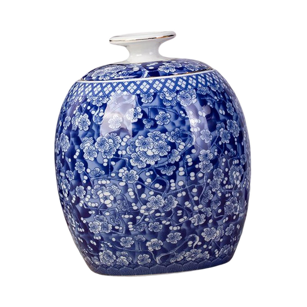 Maxbell Antique Ceramic Ginger Jar Floral Arrangement with Lid Temple Jar Handmade Style C