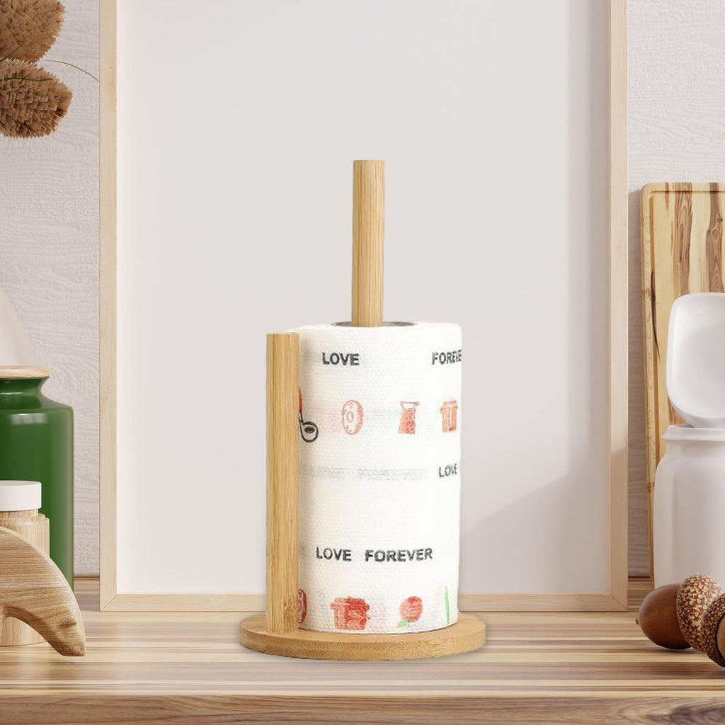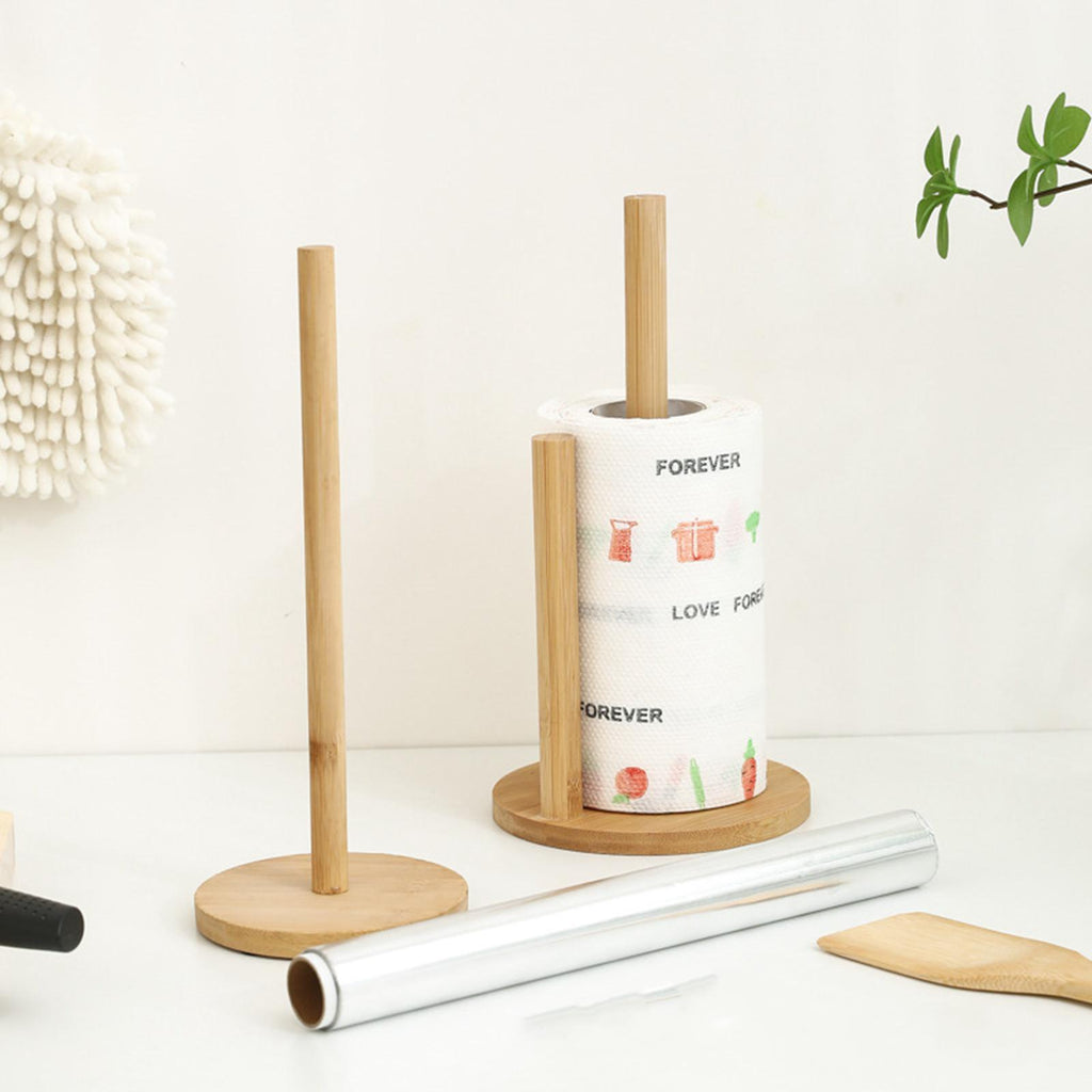 Maxbell Bamboo Paper Towel Holder Rustic Paper Towels Stand for Toilet Kitchen Table diameter 14.5cm