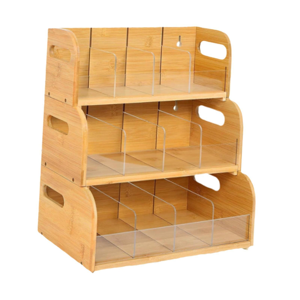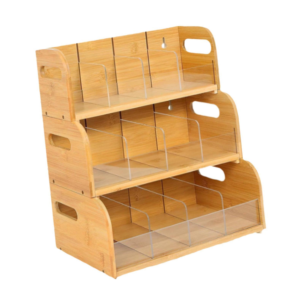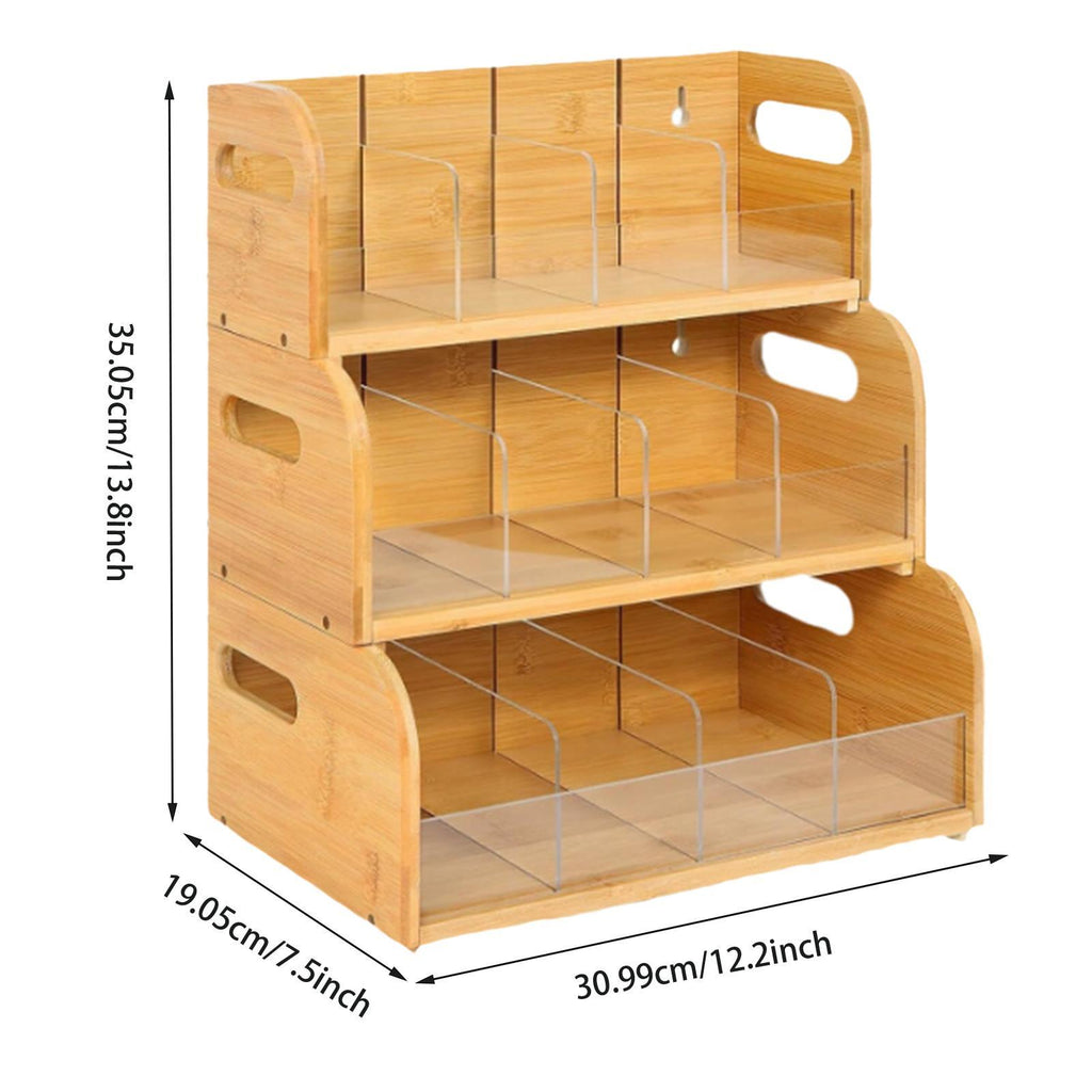 Maxbell Bamboo Tea Bag Organizer Practical Storage Holder for Cabinet Kitchen Office 3 Layer