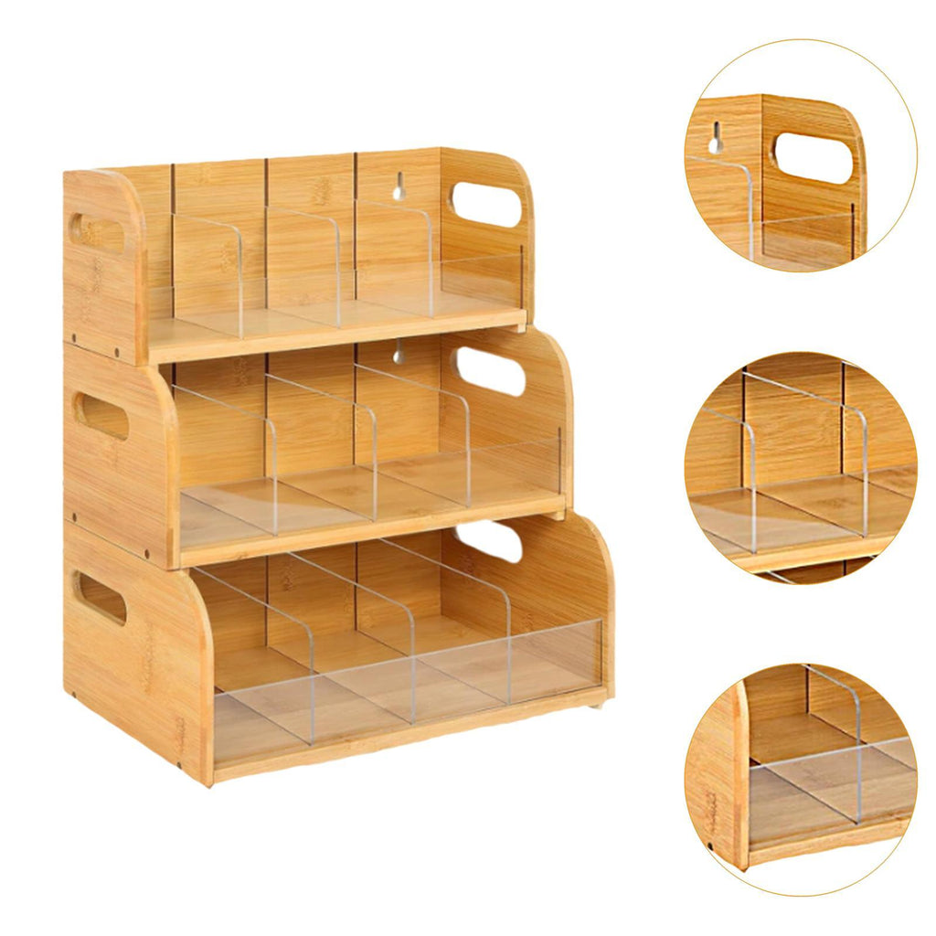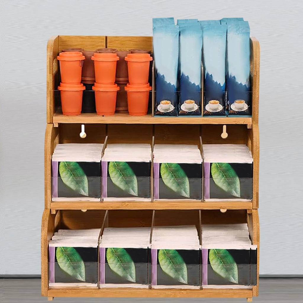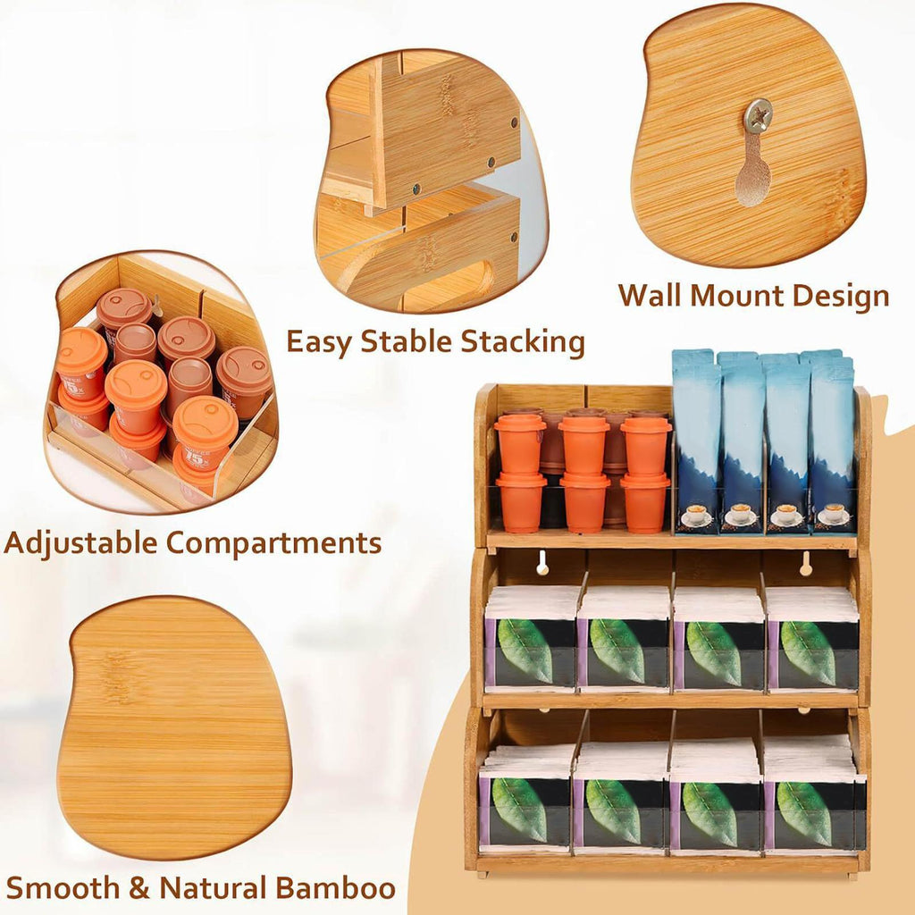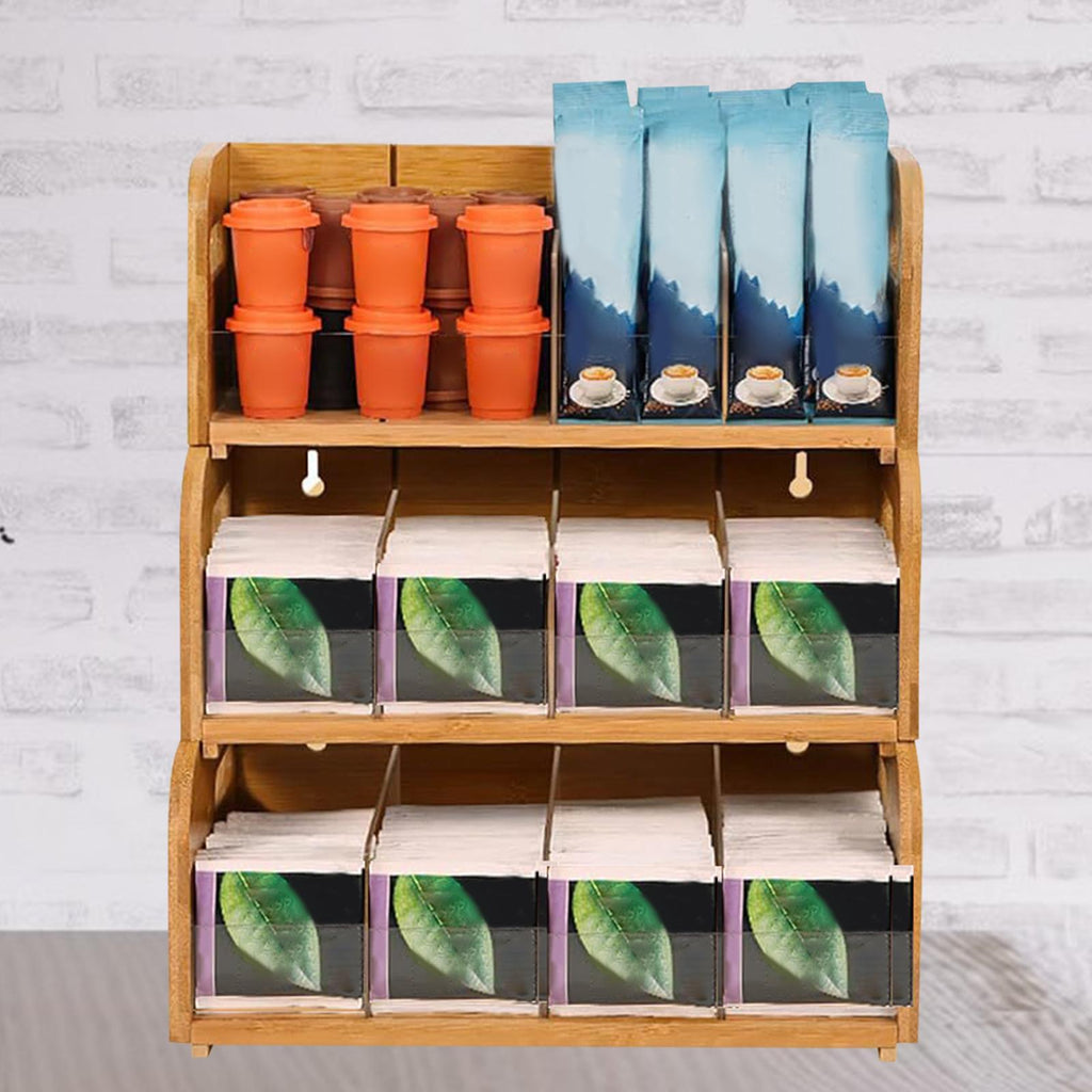 Maxbell Bamboo Tea Bag Organizer Practical Storage Holder for Cabinet Kitchen Office 3 Layer