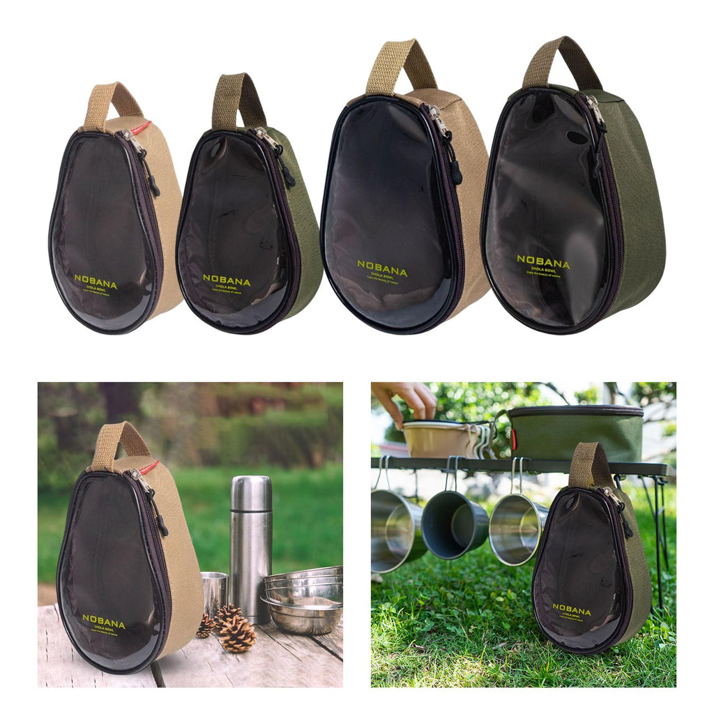 Maxbell Camping Bowl Storage Bag Container Reusable Carrier for BBQ Travel Hiking Khaki small