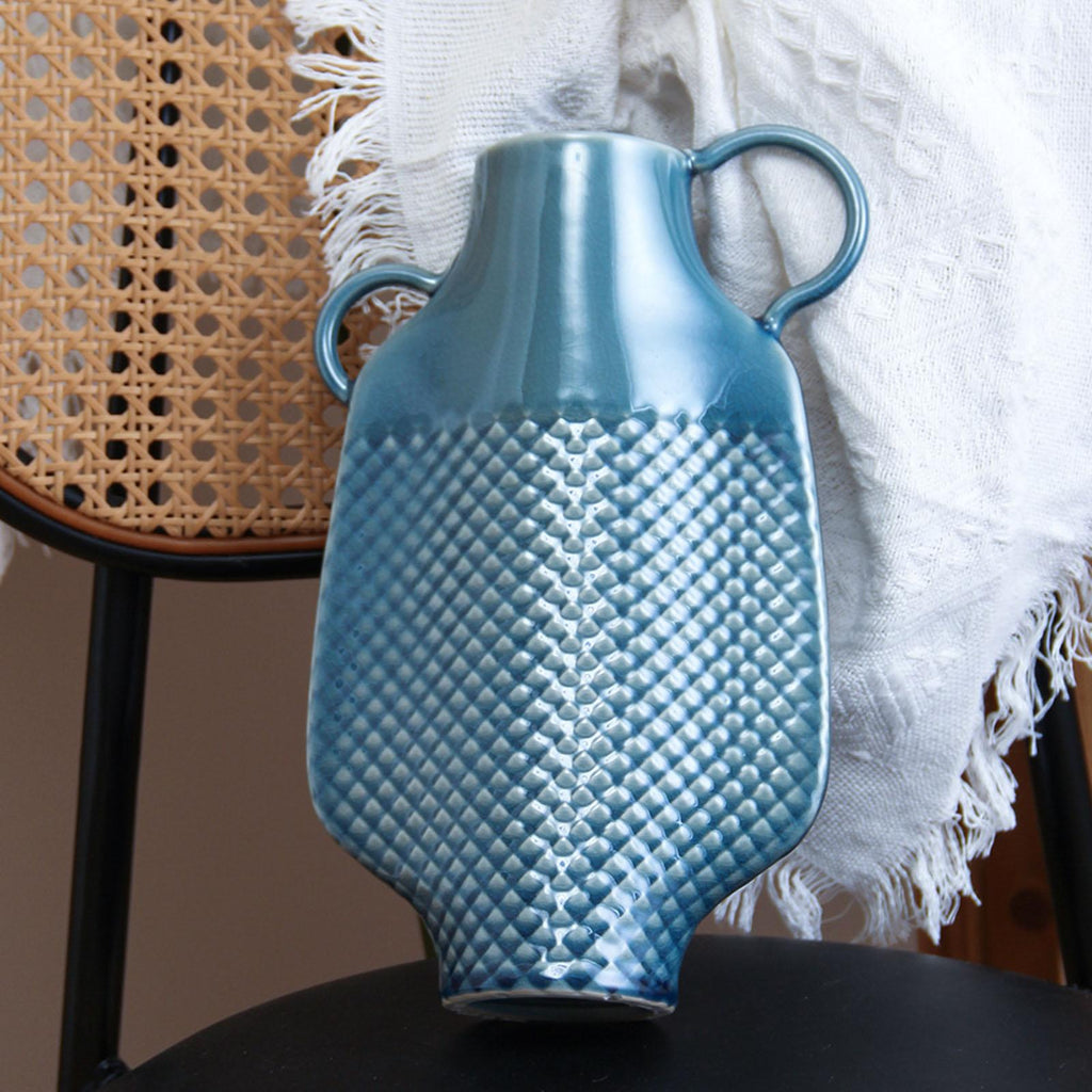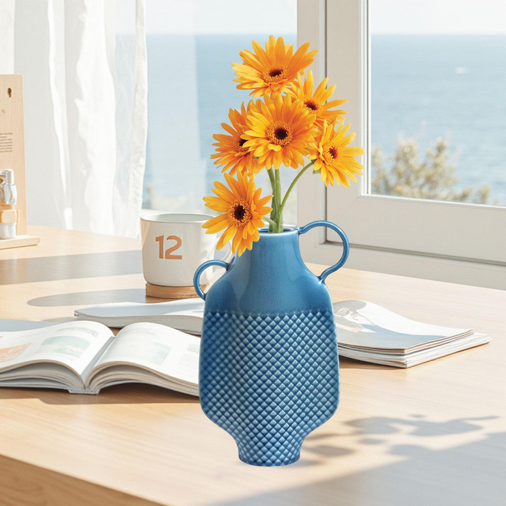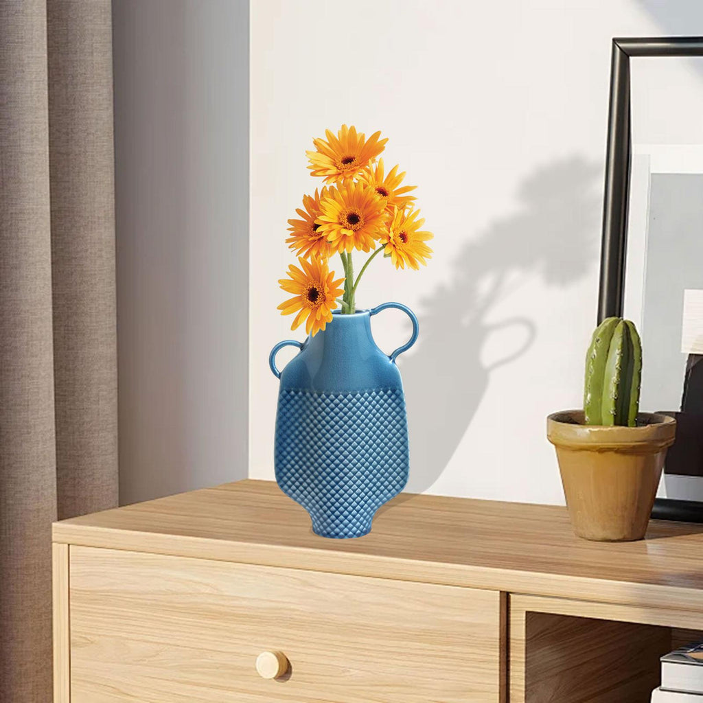 Ceramic Farmhouse Vase Art (Blue) Flowers Display for Entryway Women Kitchen Double Handle