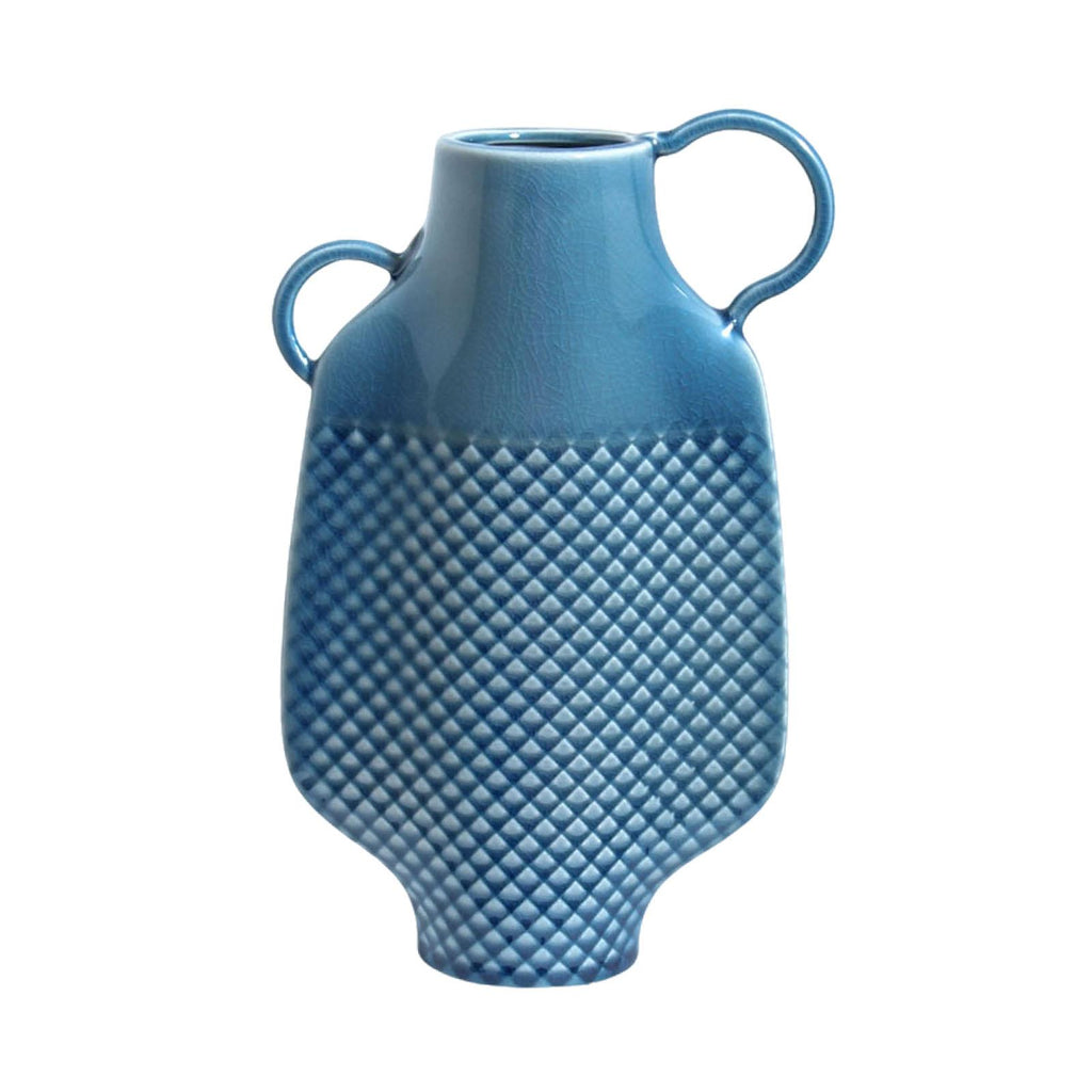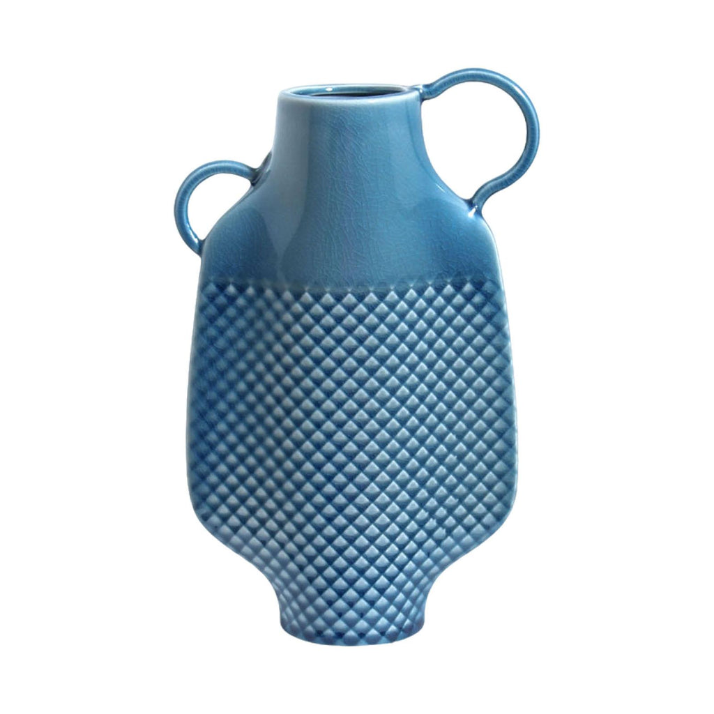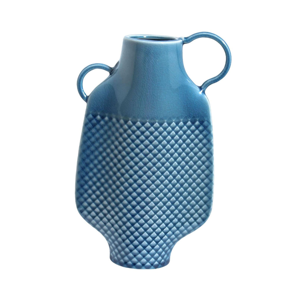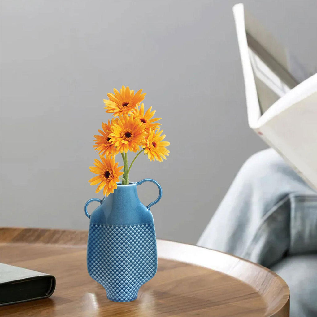 Ceramic Farmhouse Vase Art (Blue) Flowers Display for Entryway Women Kitchen Double Handle