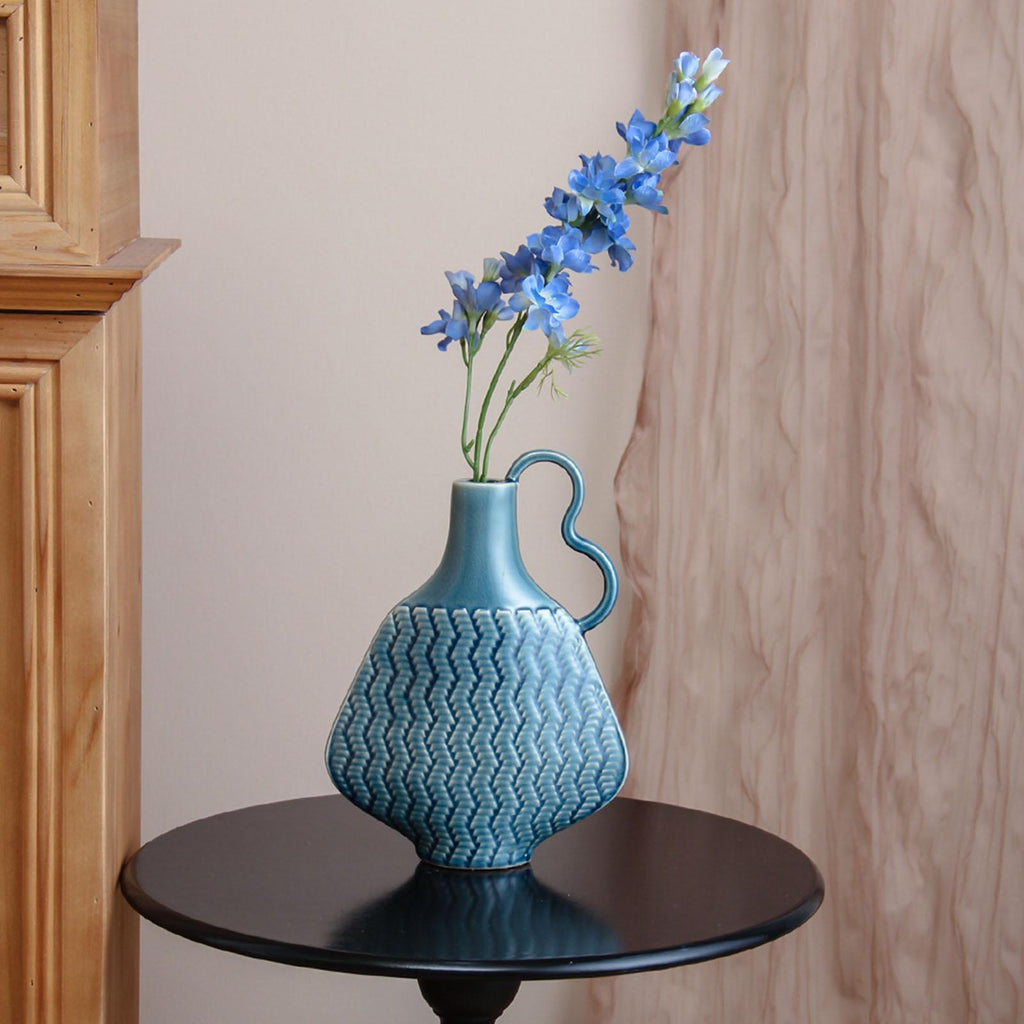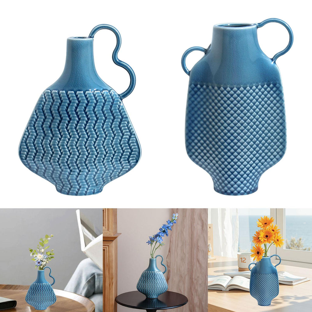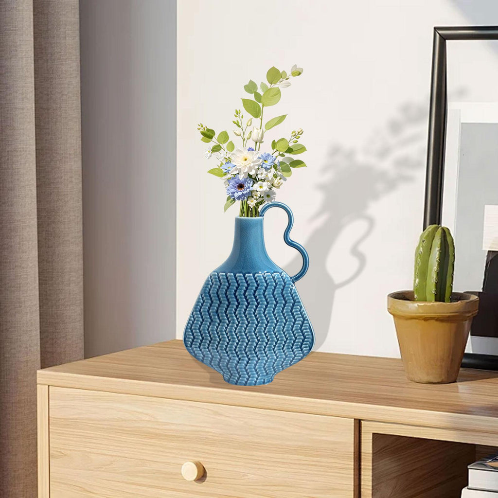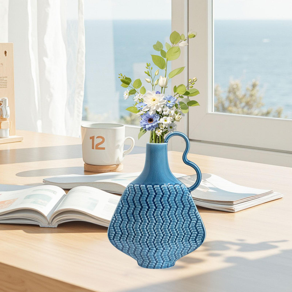 Ceramic Farmhouse Vase Art (Blue) Flowers Display for Entryway Women Kitchen Single Handle