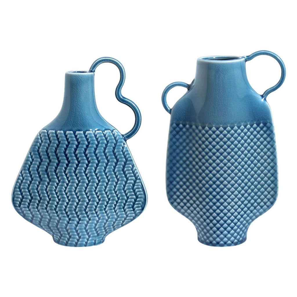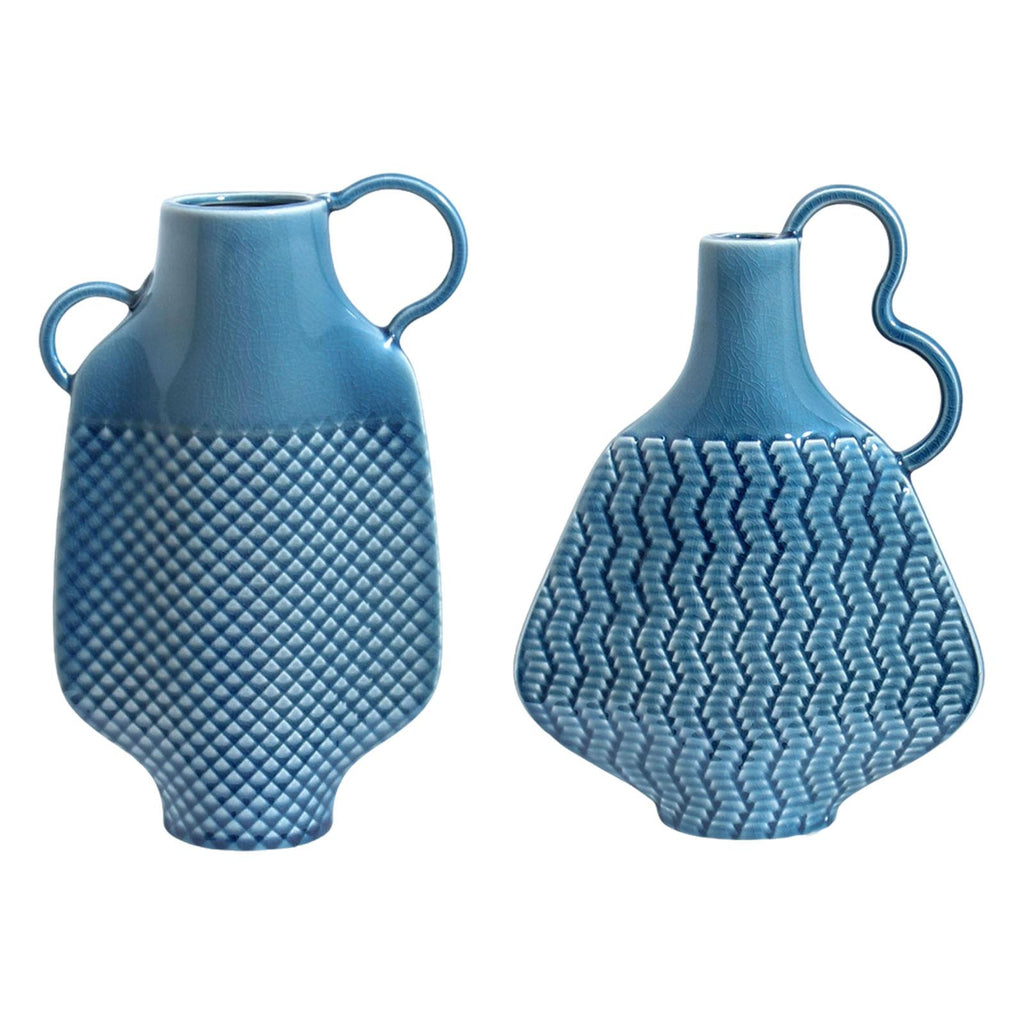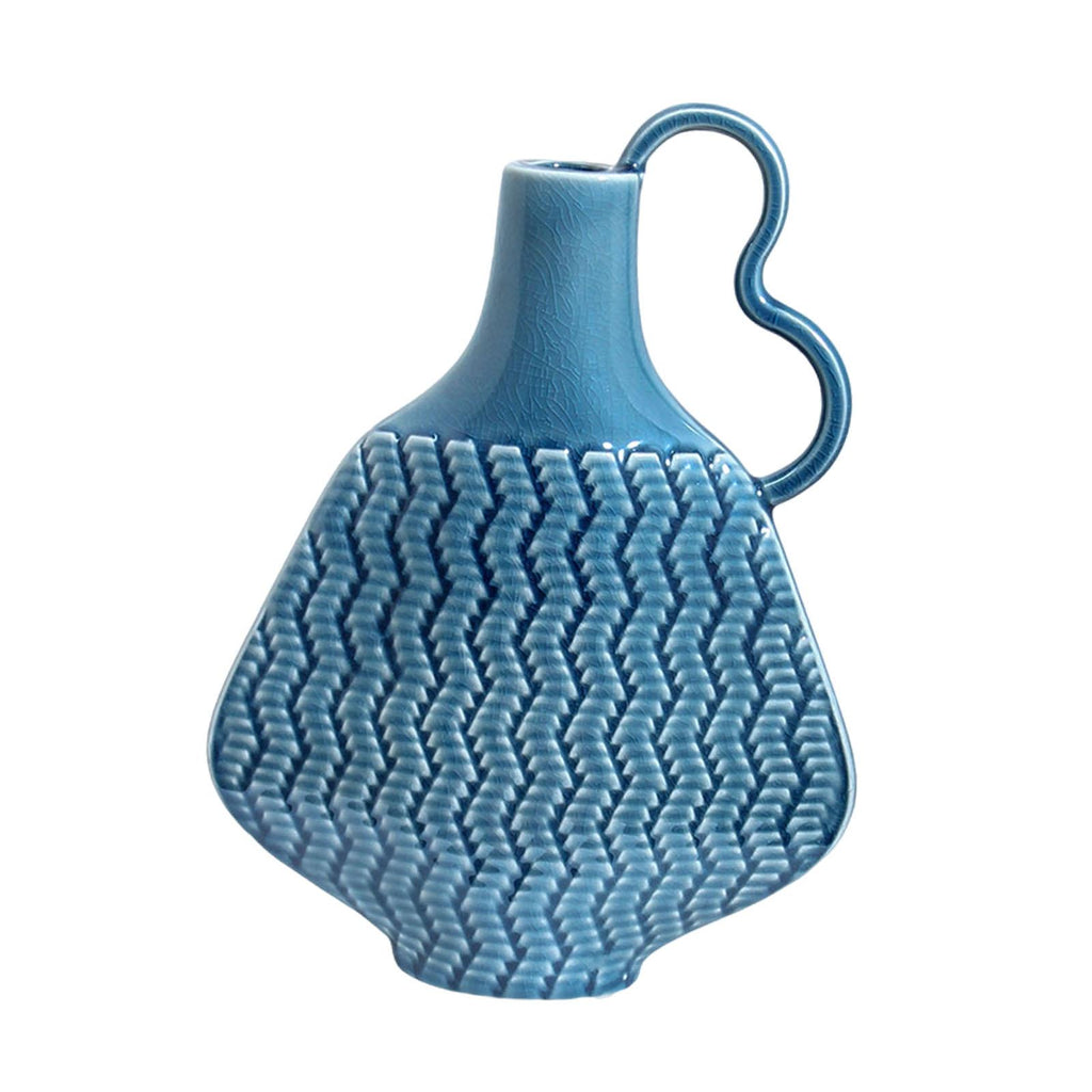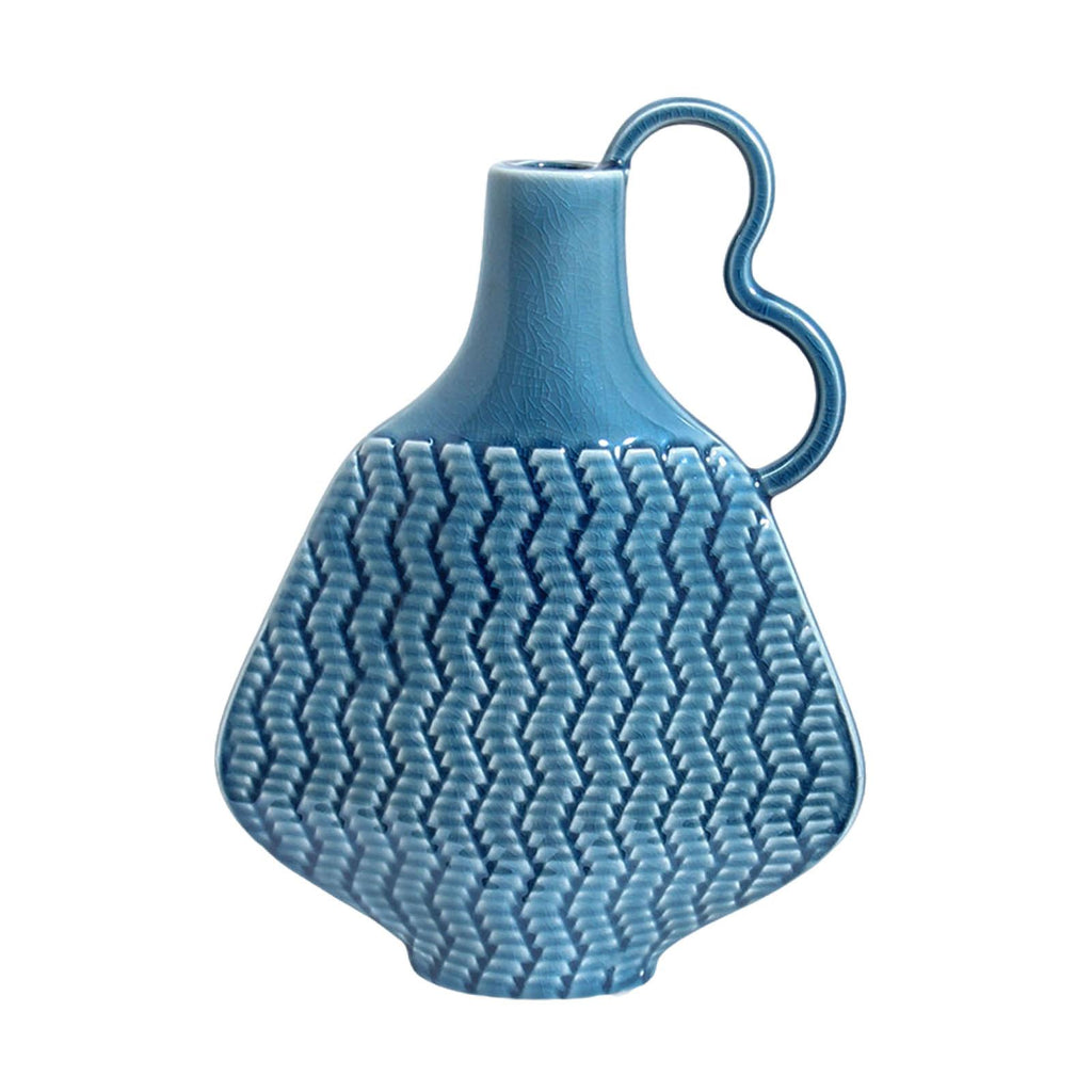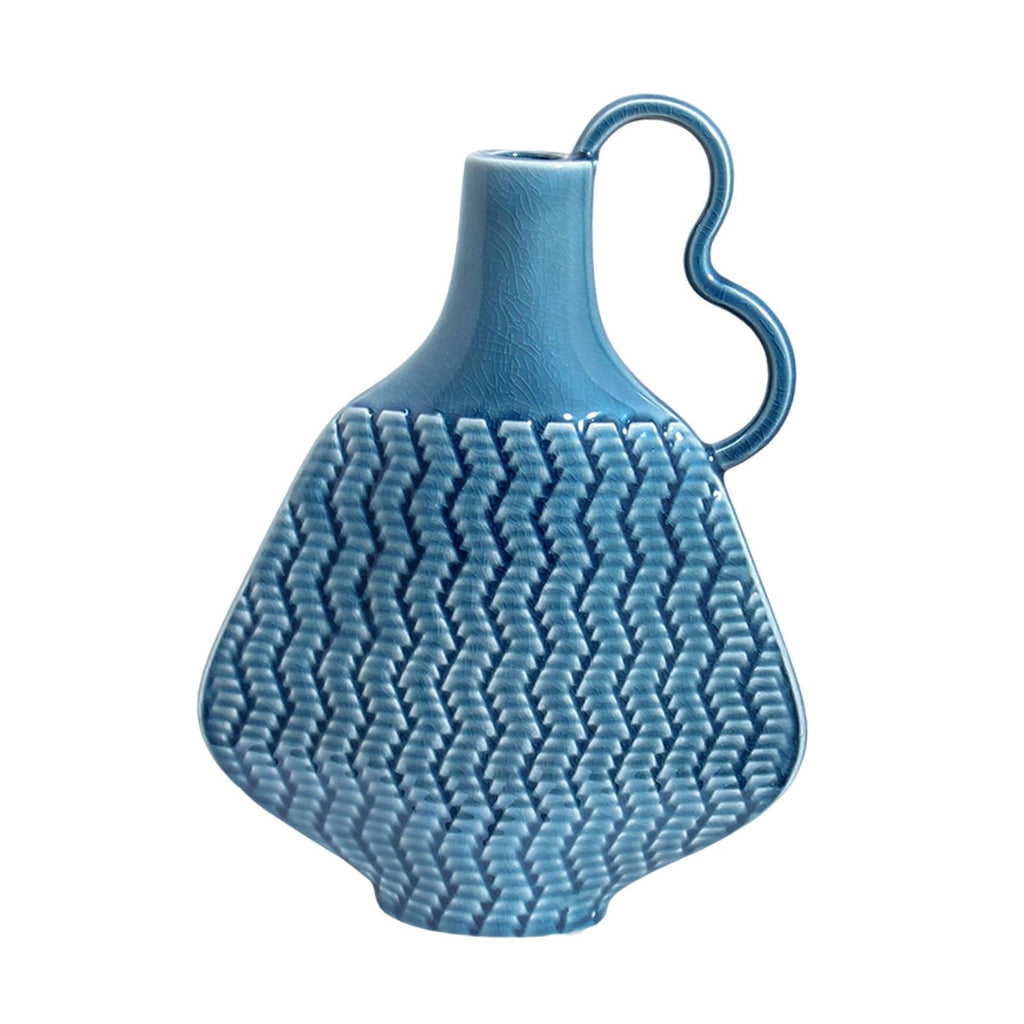Ceramic Farmhouse Vase Art (Blue) Flowers Display for Entryway Women Kitchen Single Handle