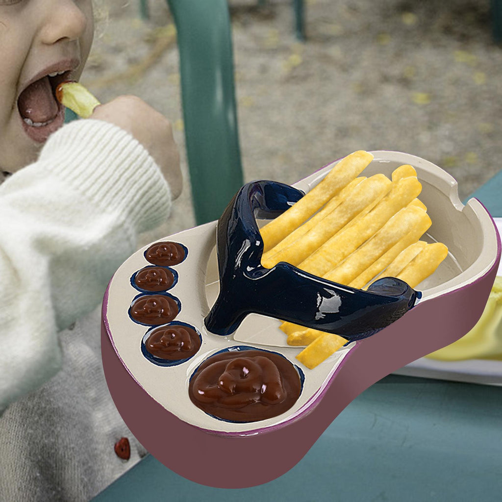Feet Shaped French Fries Dish: French Fries Dish can hold and serve French fries, chips and dip, veggie and dipping sauce, which can attract children's attention.