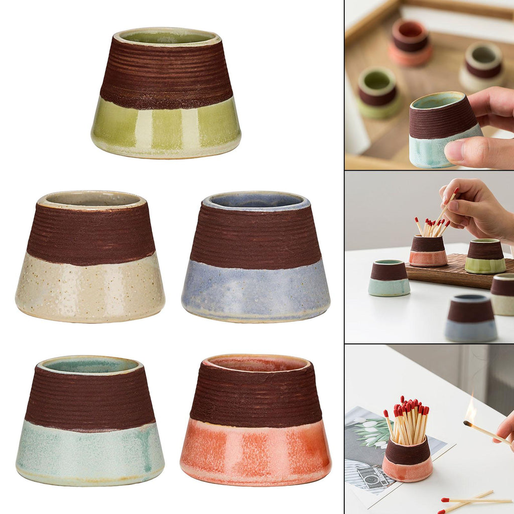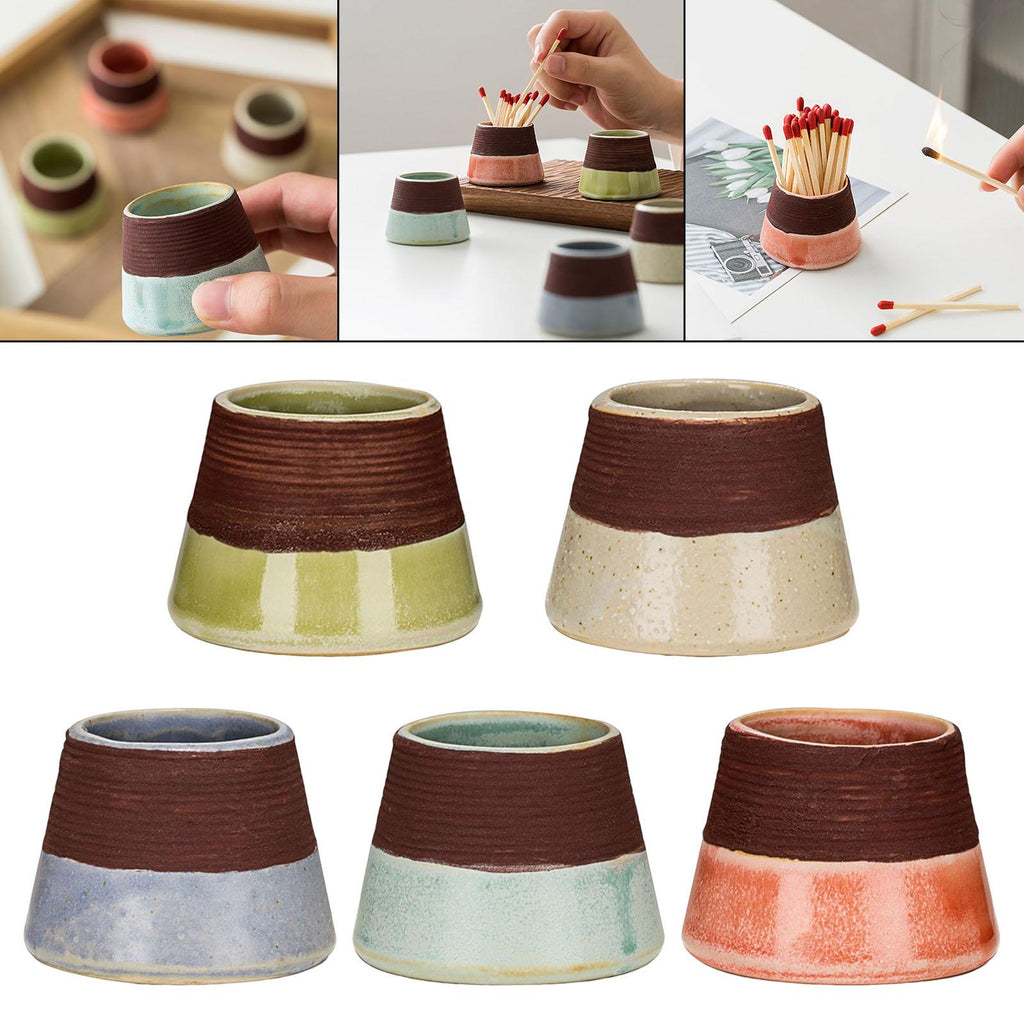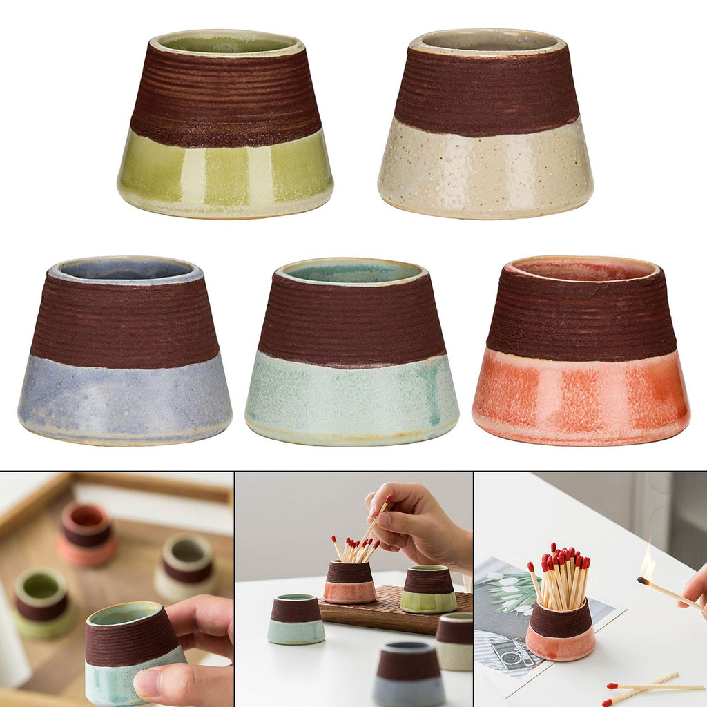 Maxbell Maxbell Ceramic Retro Match Holder for Fireplace with Storage Pot Jar Gifts Yellow