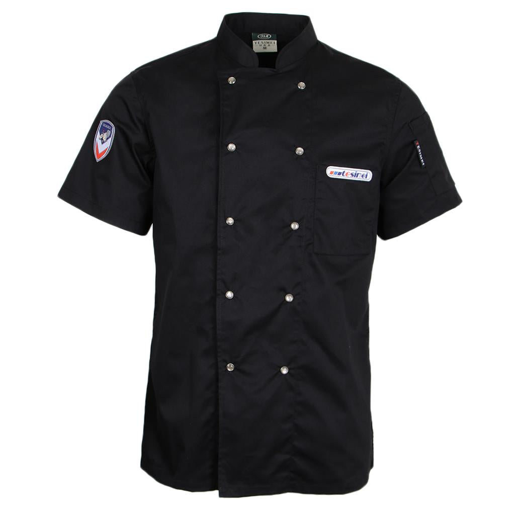Maxbell Chef Jacket Coat Uniform Short Sleeve Hotel Kitchen Cook Apparel 3XL Black