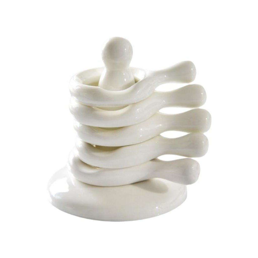 Chopstick Rest, Porcelain Ceramic Tableware Stand, Japanese Design Holder, Home Kitchen Accessory 6 Rests 1 Holder White