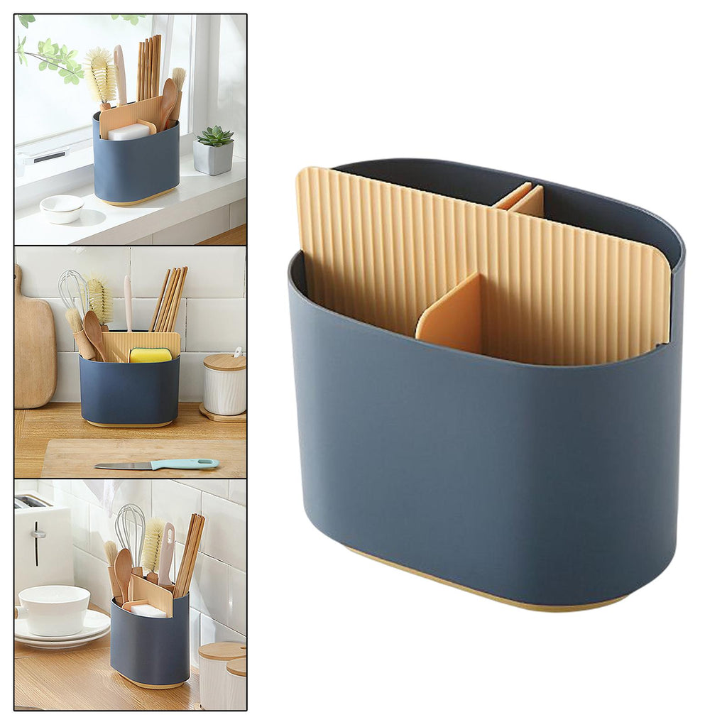 Maxbell Chopstick Storage Holder Cutlery Drain Rack for Kitchen Countertop Cutlery Dark Blue